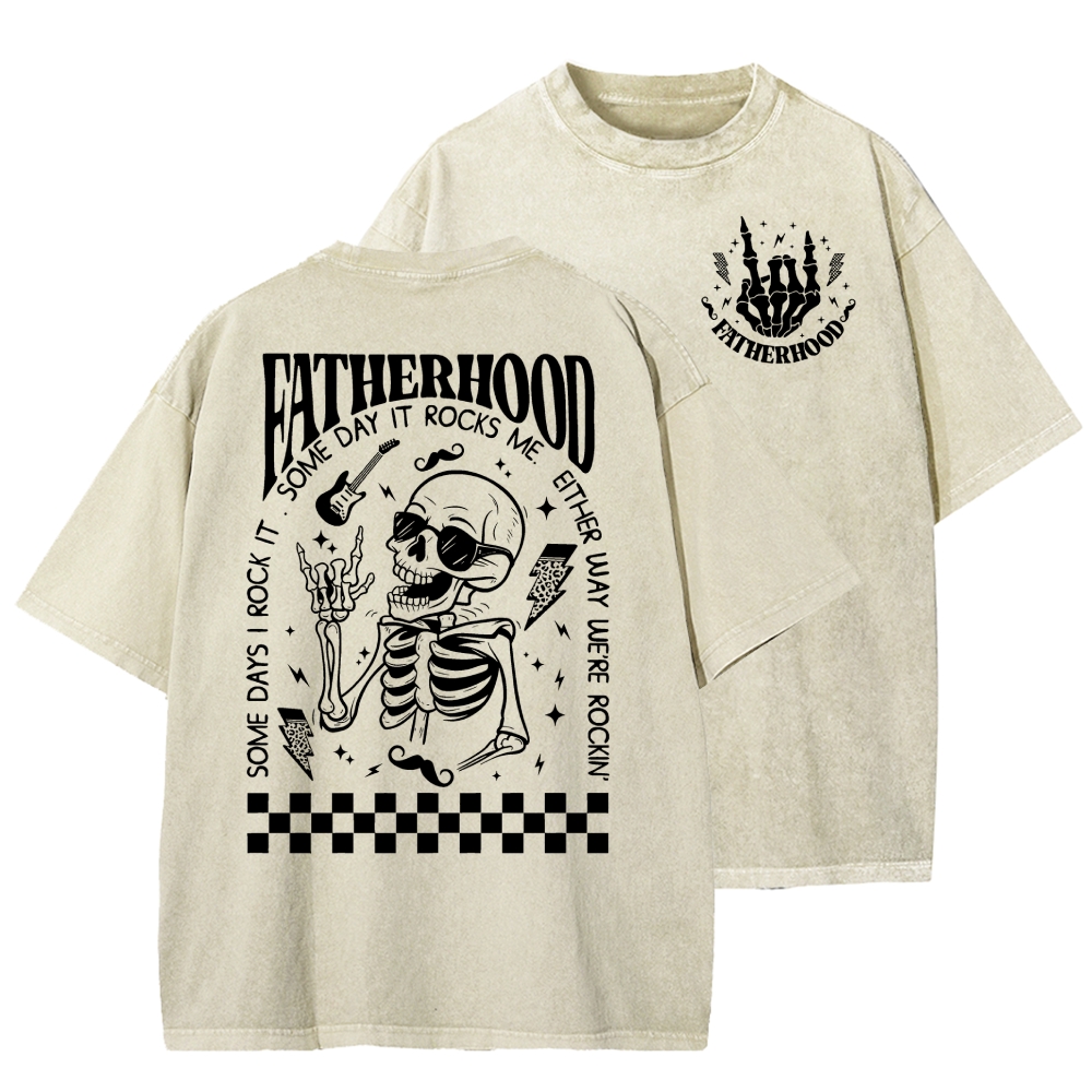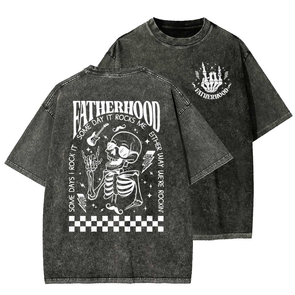 Funny Fatherhood Sometimes I Rock It Sometimes It Rocks Me Front And Back Printing Washed T-shirt