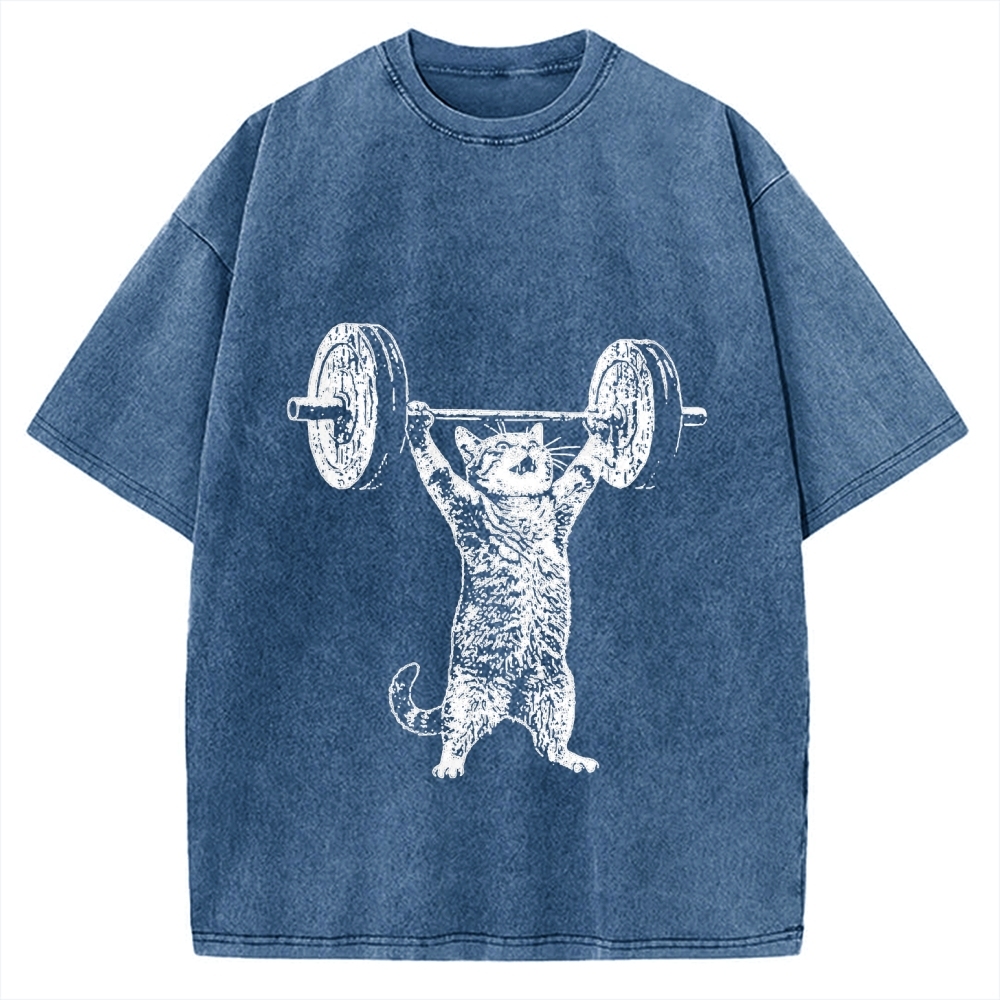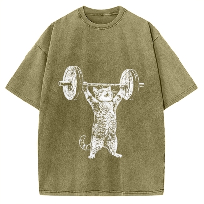 Funny Weightlifting Cat Vintage Washed T-shirt