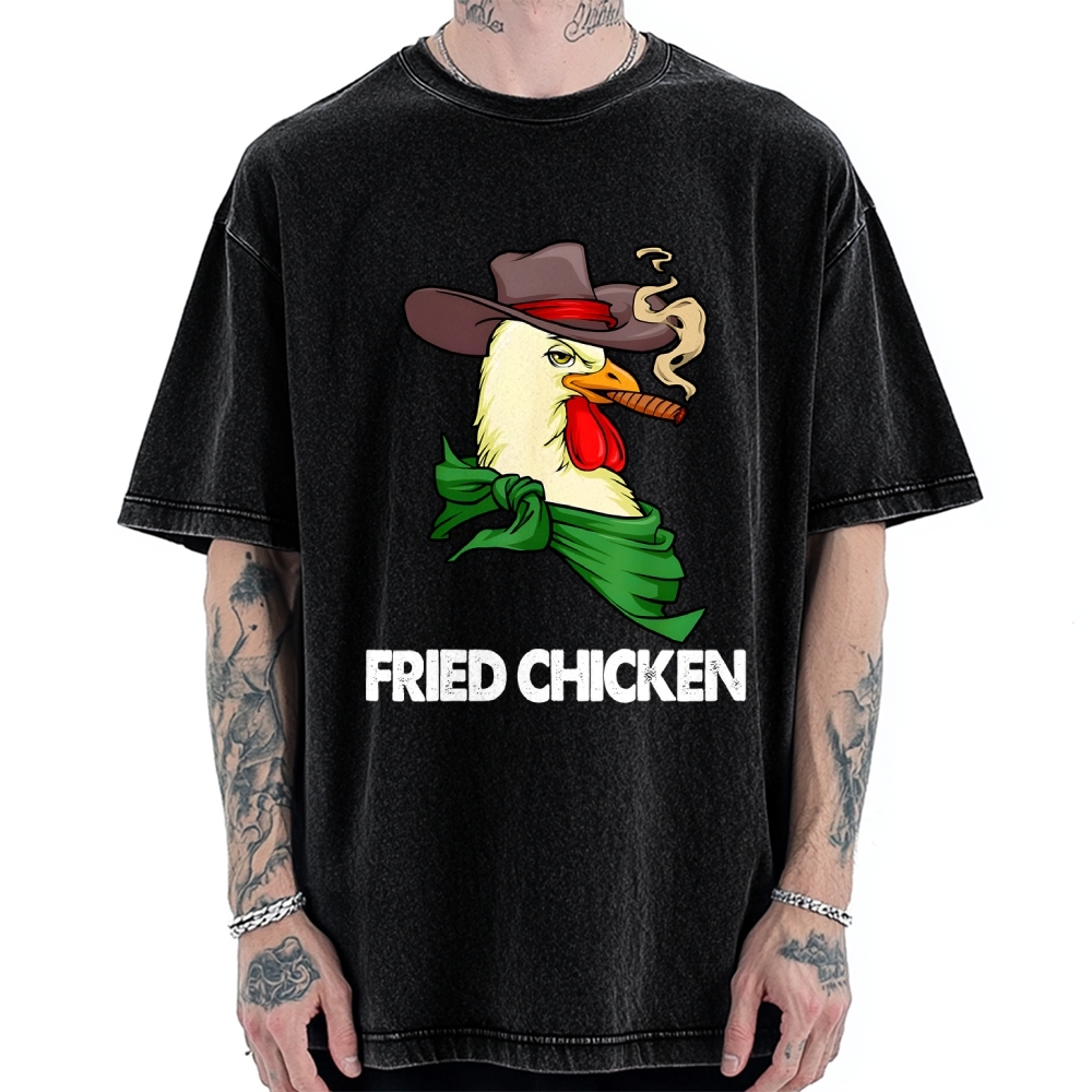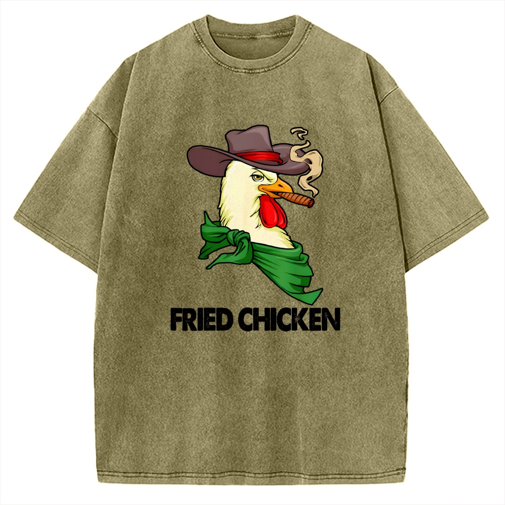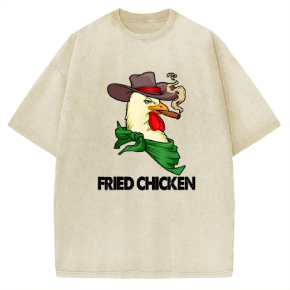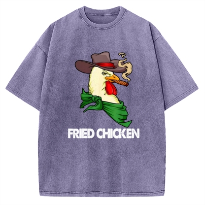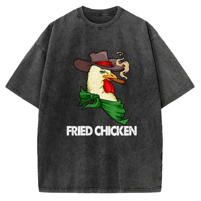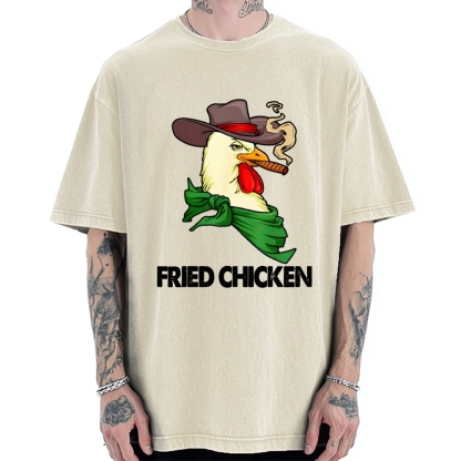 Funny White Smoking Chicken Vintage Washed T-shirt