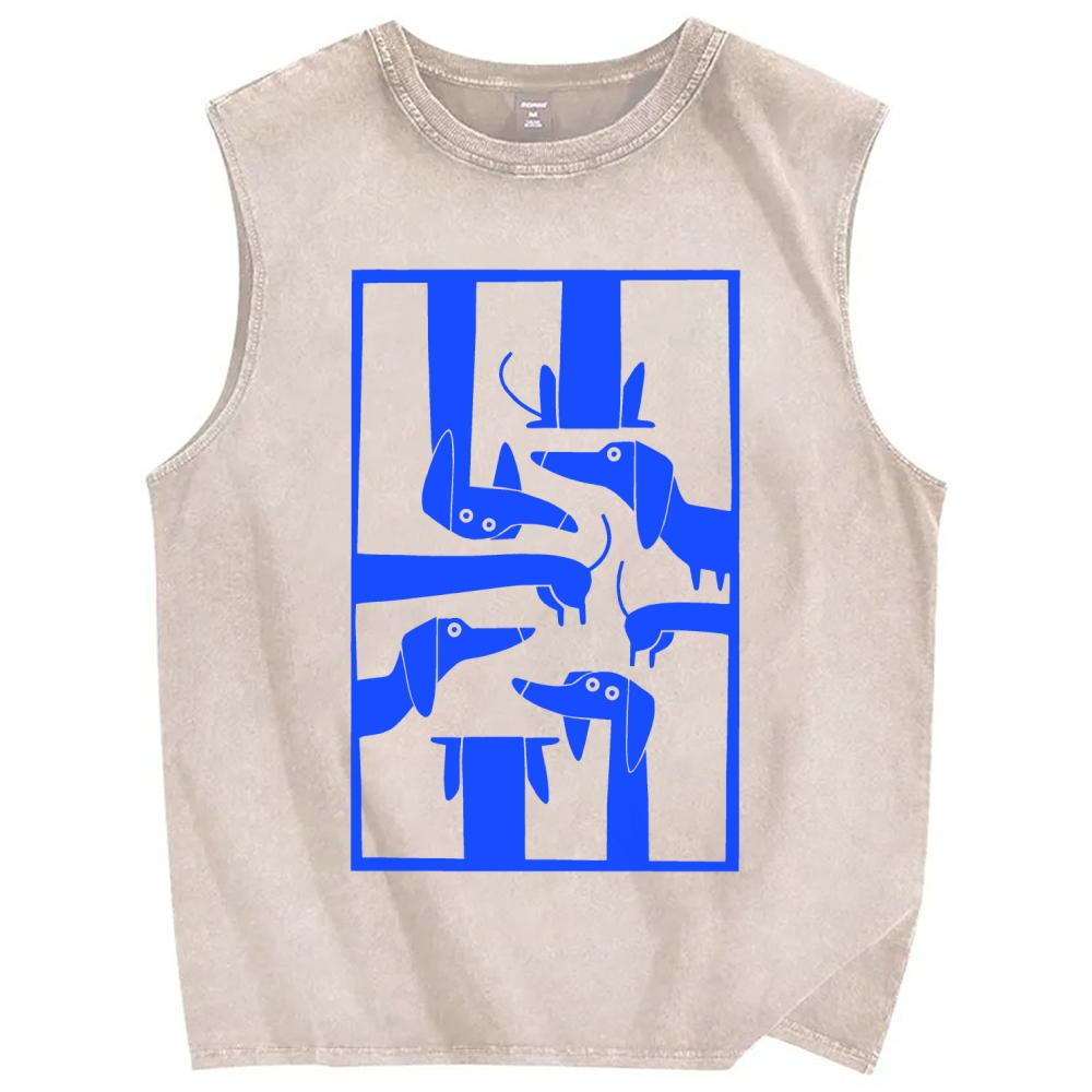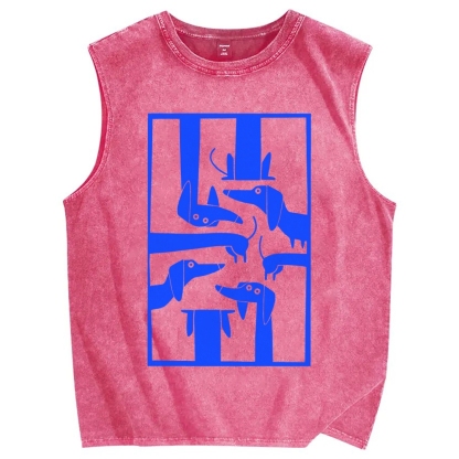 Geometric Dachshund Dog Vintage Distressed Washed Tank Top