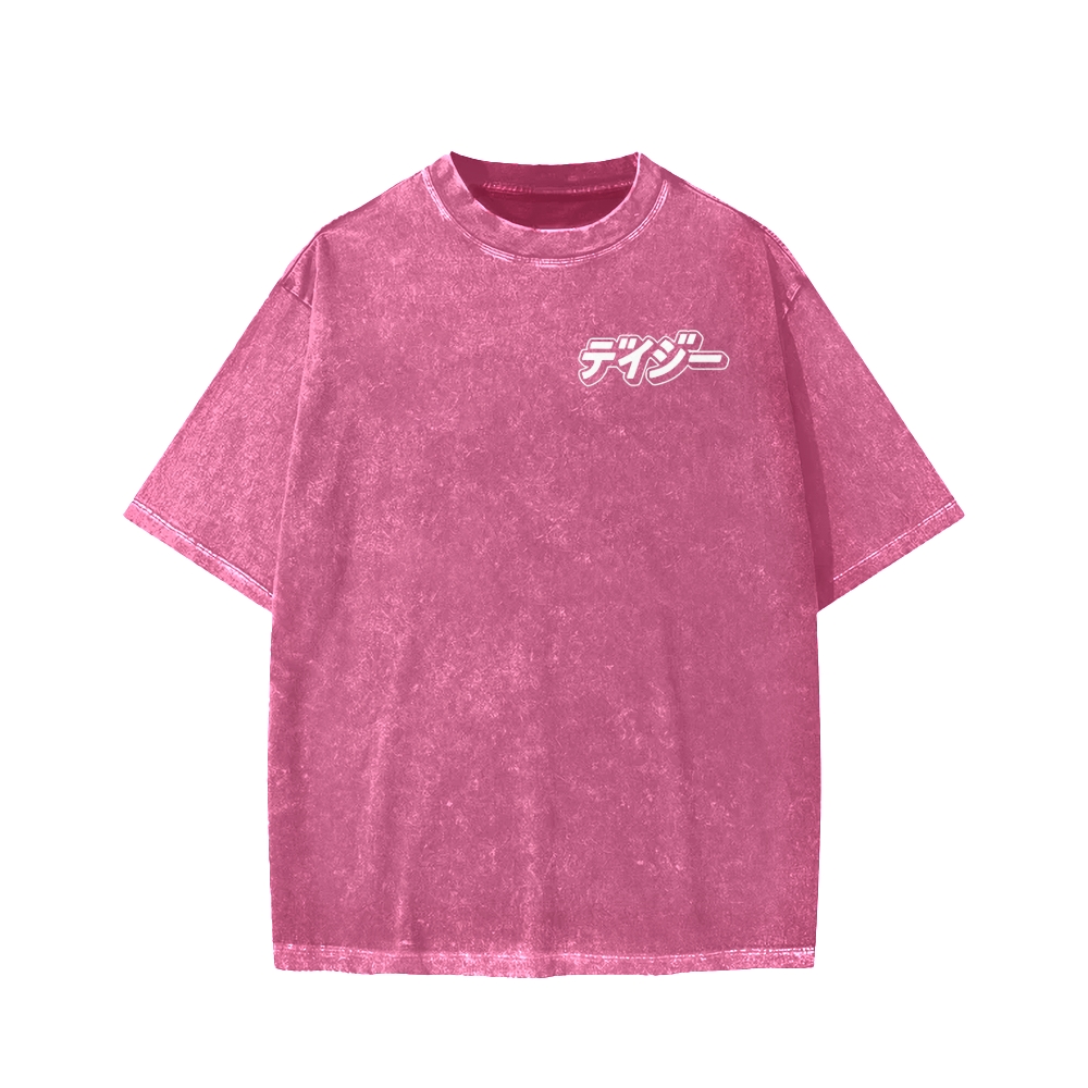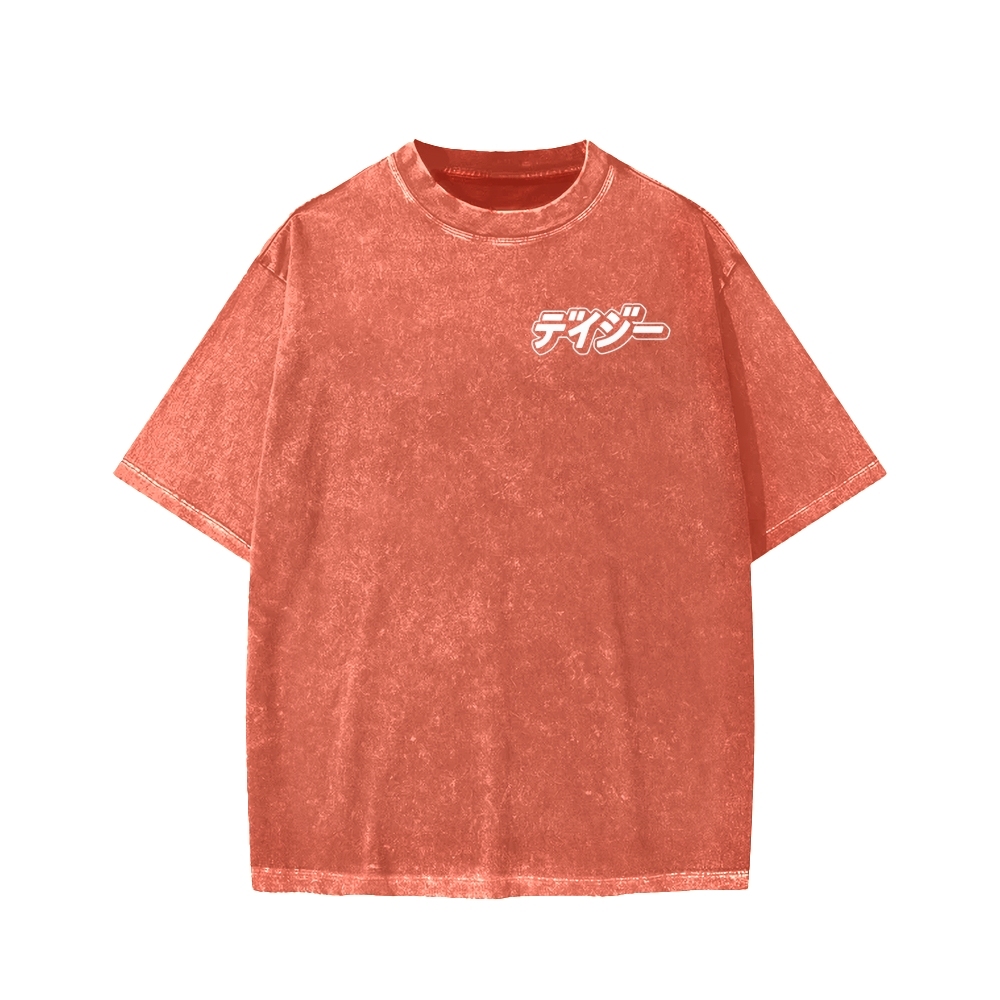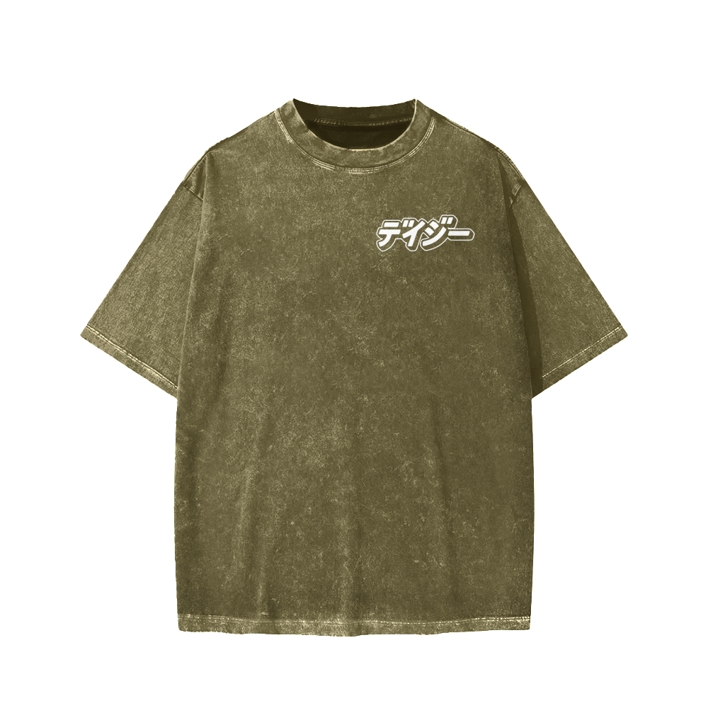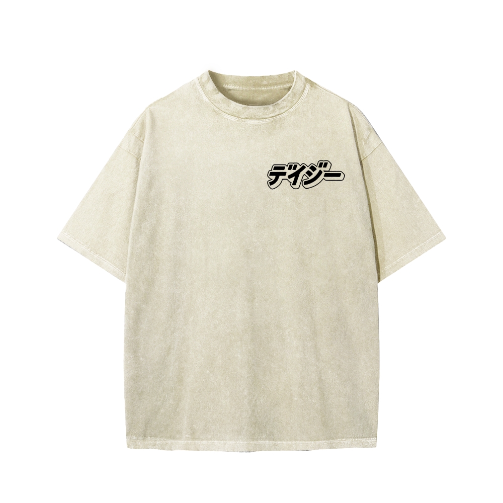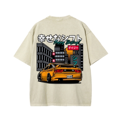 HAPPY SHIFT!! Retro Japanese Car Front And Back Printing Washed T-shirt