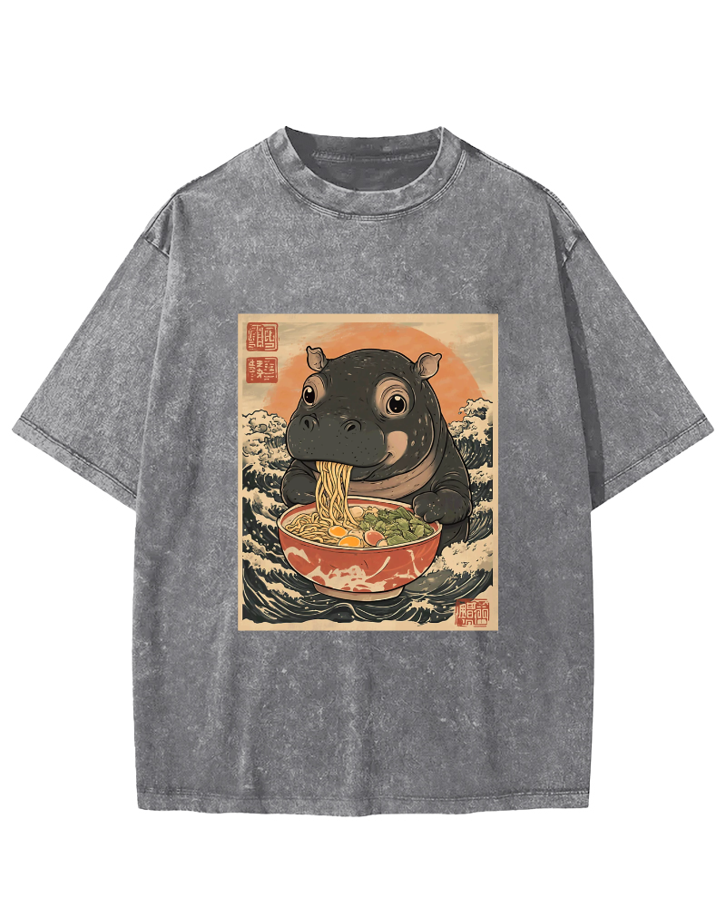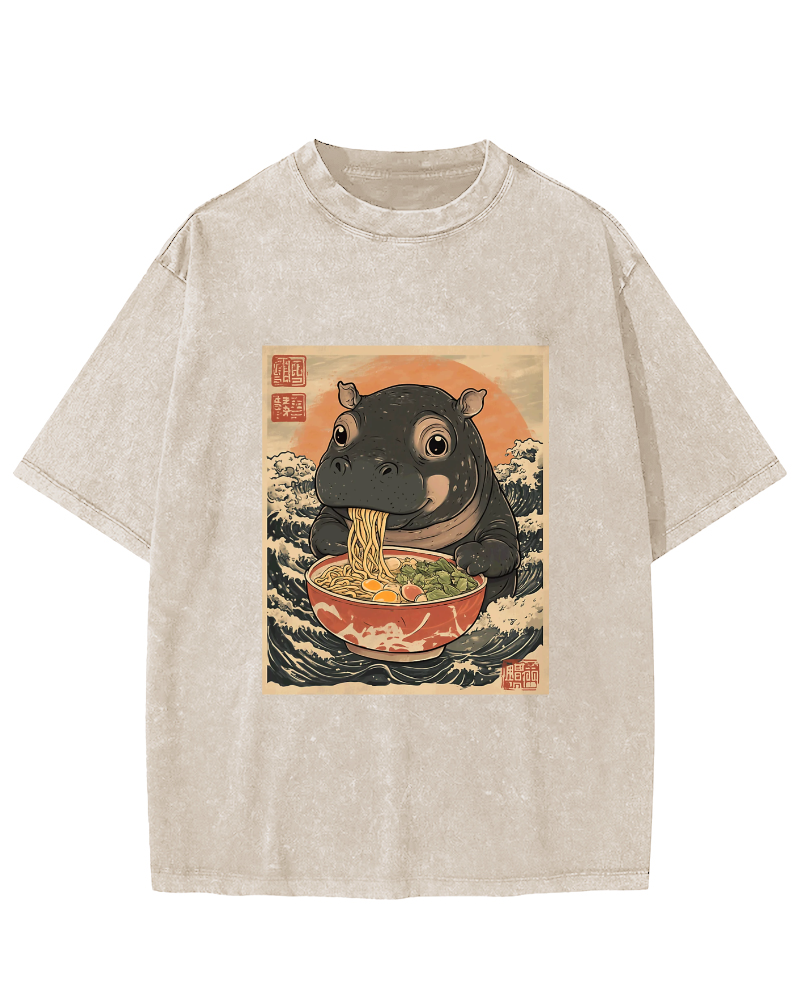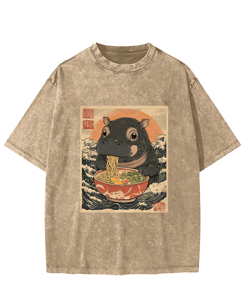 Hippo eating ramen Vintage Washed T-shirt