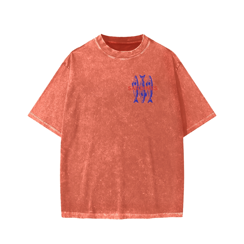 Japan Sardines Market Front And Back Printing Washed T-shirt