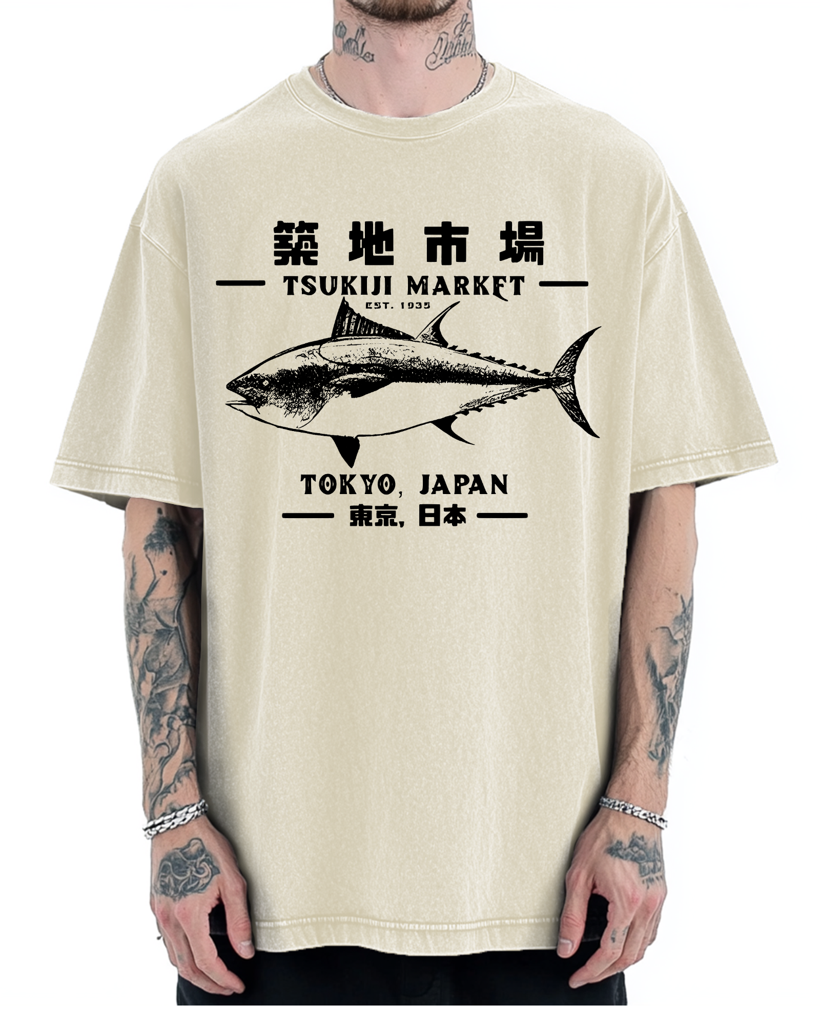 Japan Tsukiji Market Tuna Vintage Washed T-shirt