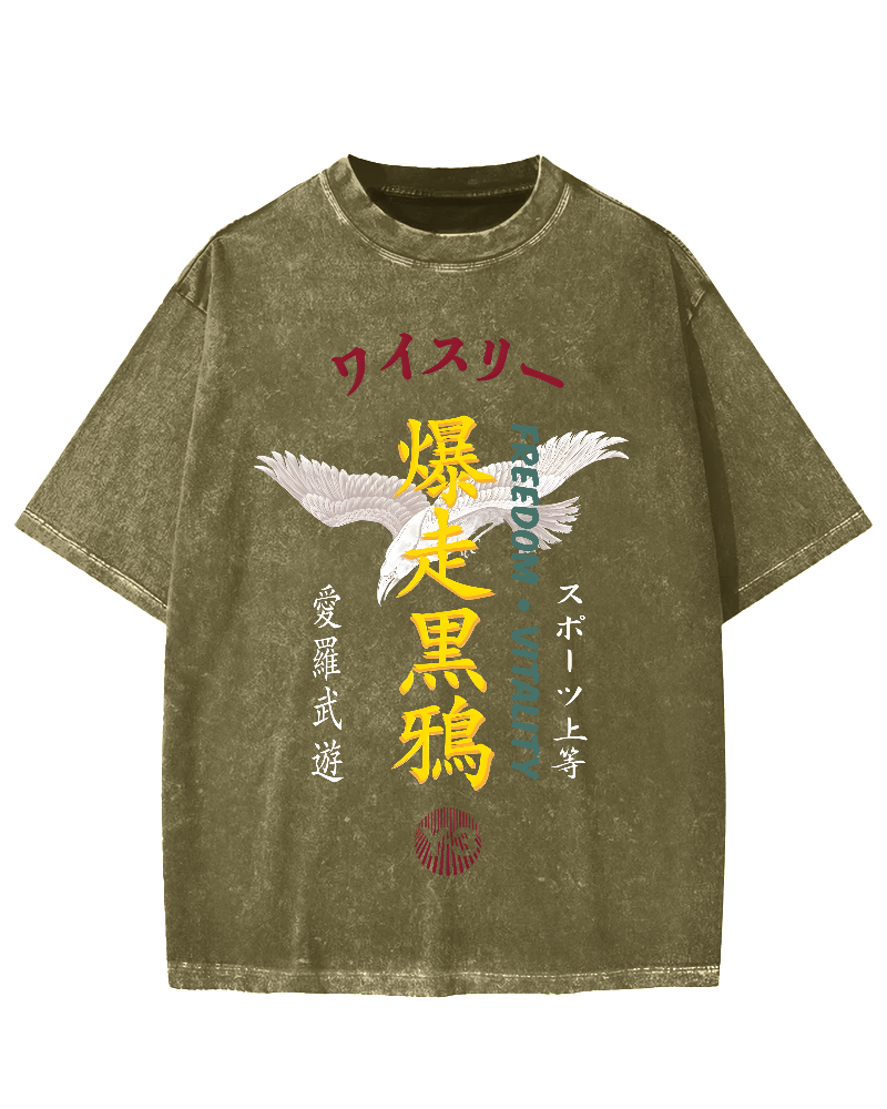 Japanese Black Crow Vintage Washed T-shirt