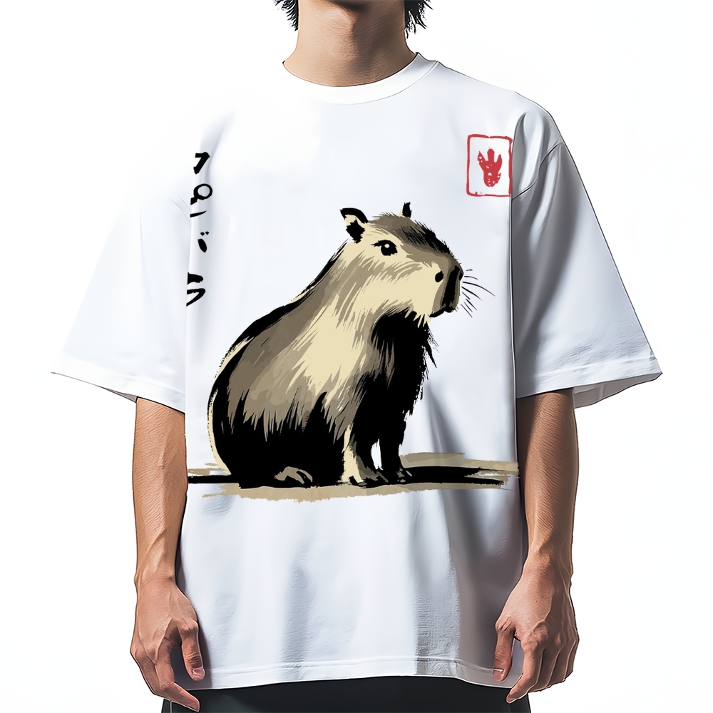 Japanese Ink Art Capybara Cotton casual T-shirt