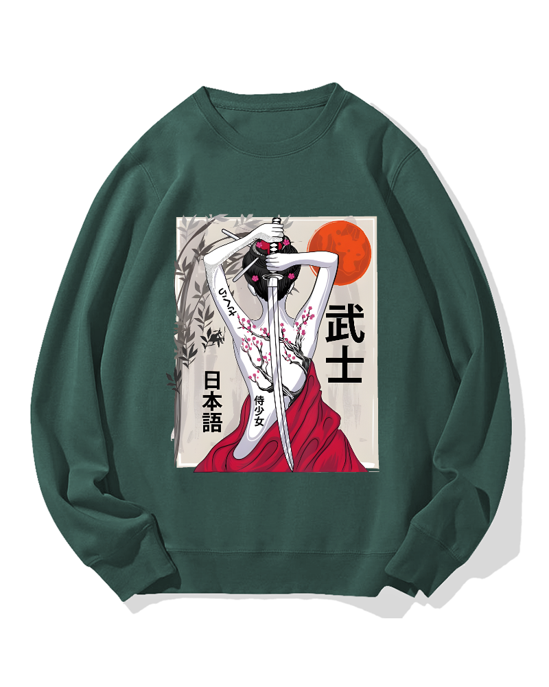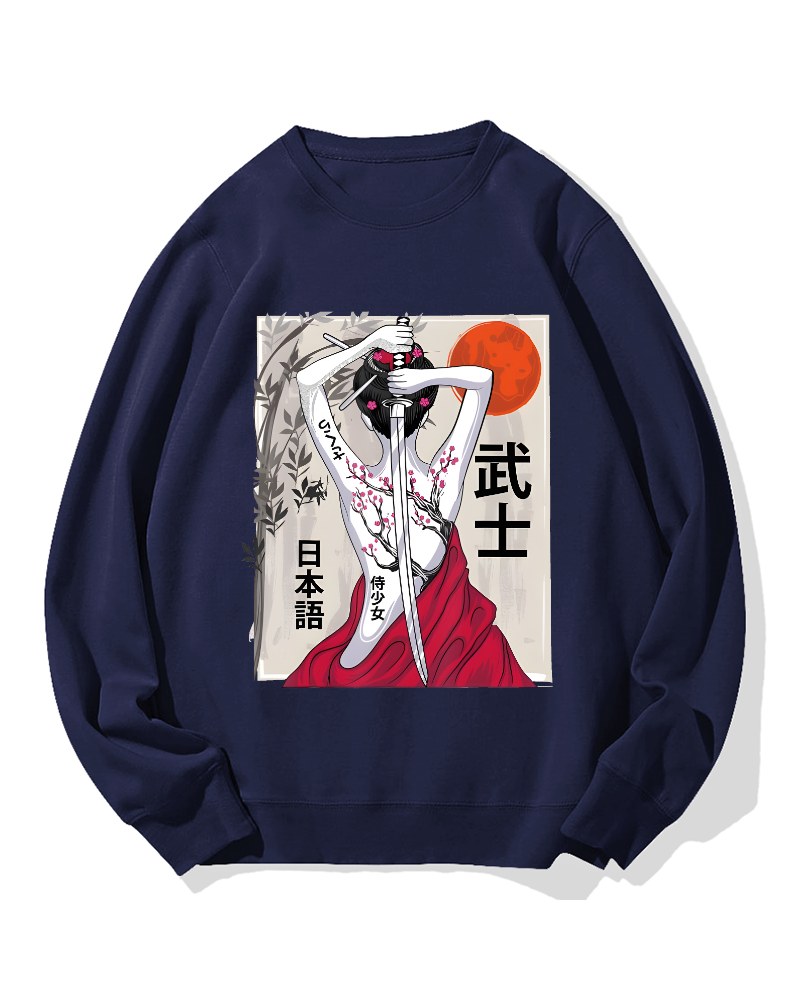 Japanese Samurai Girl Scenery Vintage Sakura Cotton Sweatshirt