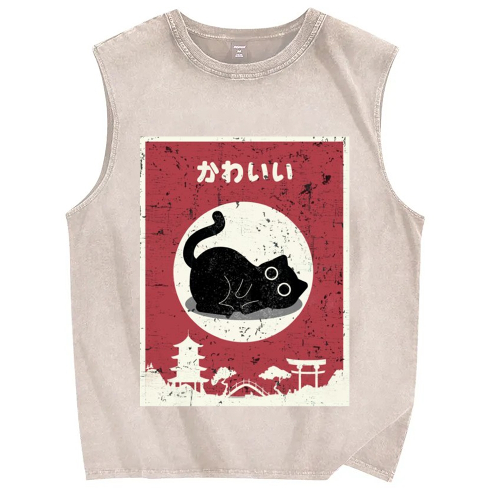 Kawaii Cute Cat Vintage Distressed Washed Tank Top