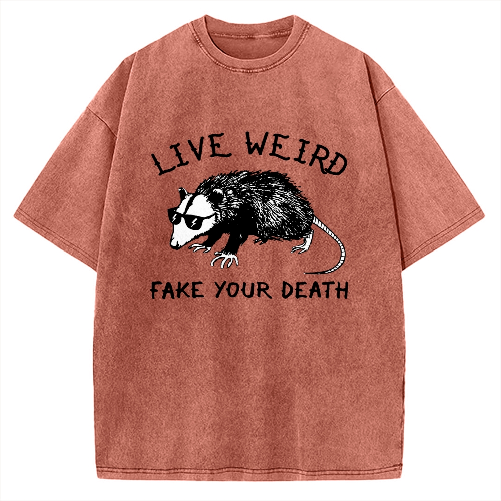 Live Weird Fake Your Death funny possum Vintage Washed T-shirt