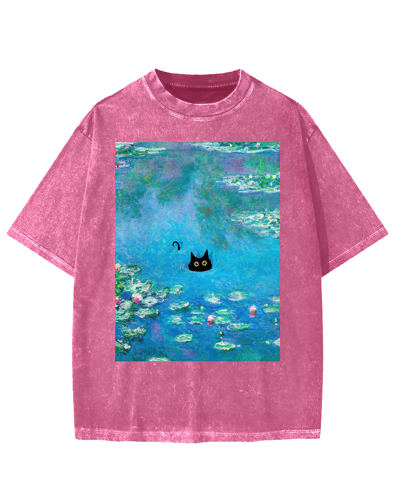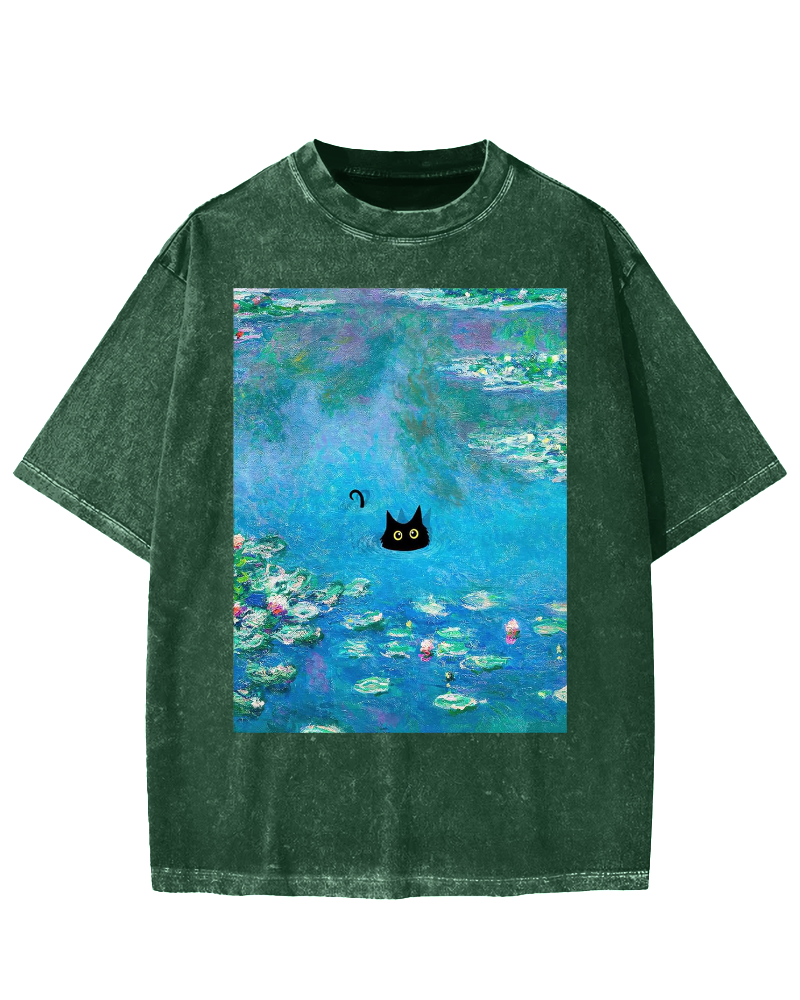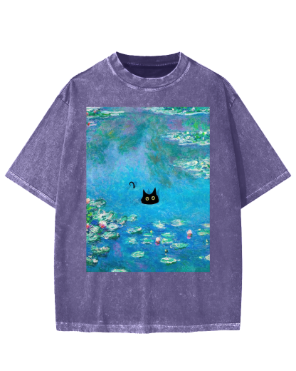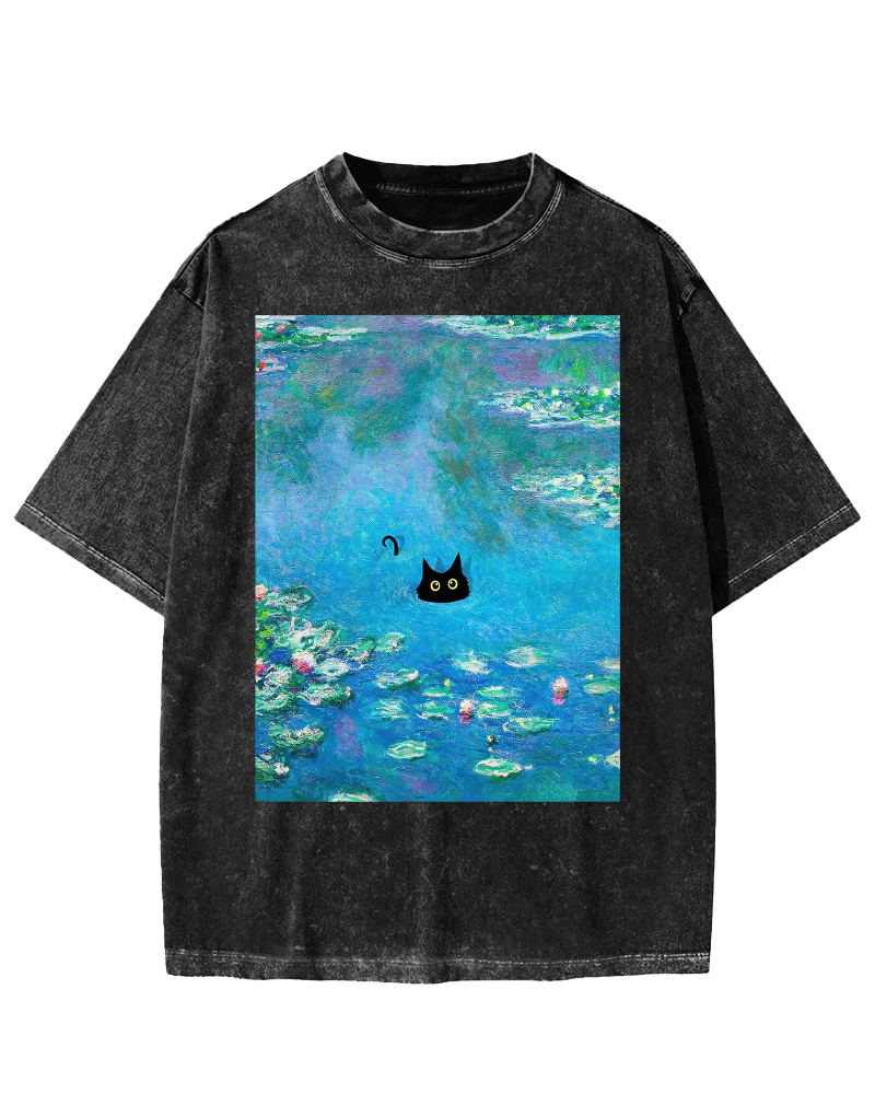 Monet Water Lily Cat Vintage Washed T-shirt