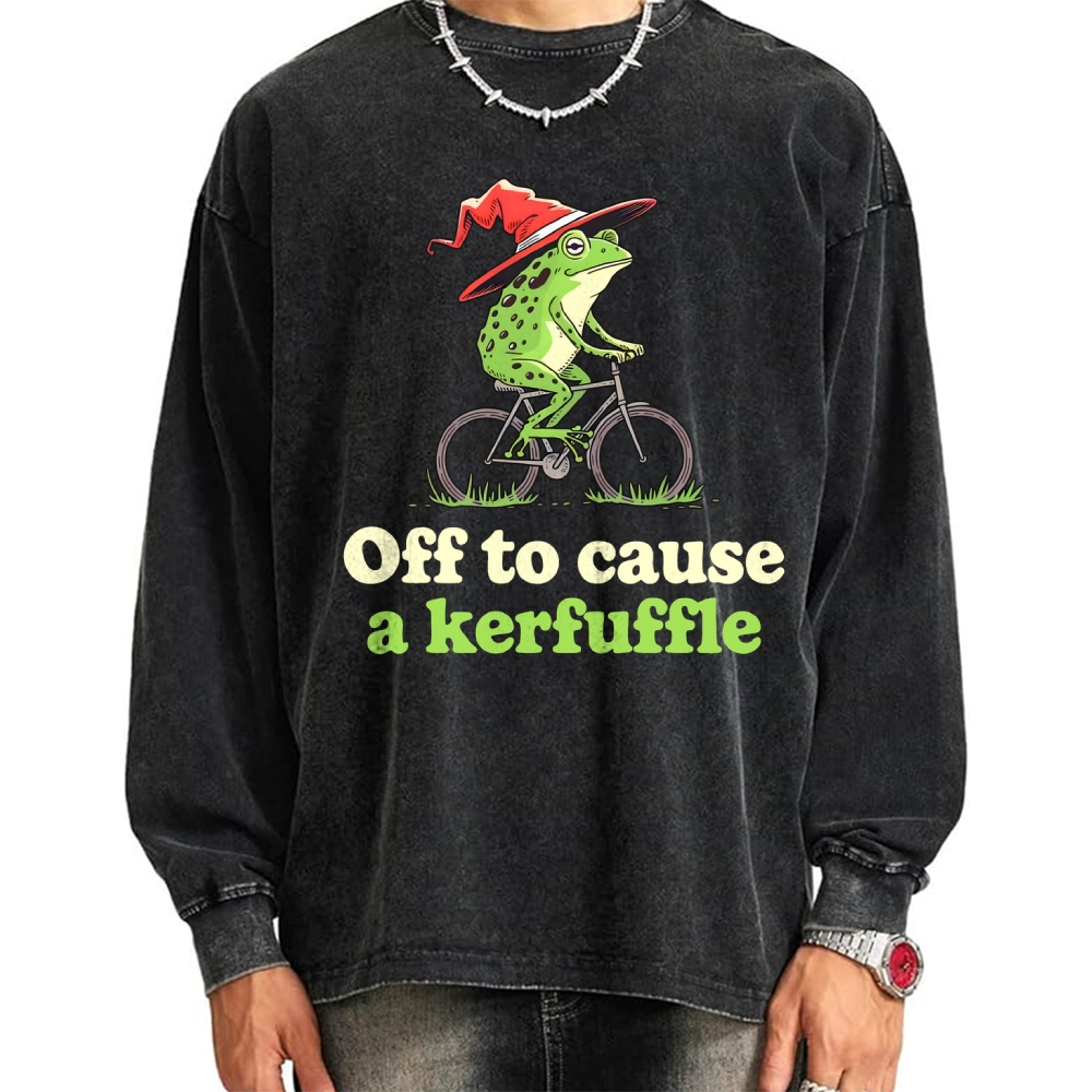 Off To Cause A Kerfuffle Frog Vintage Washed Sweatshirts