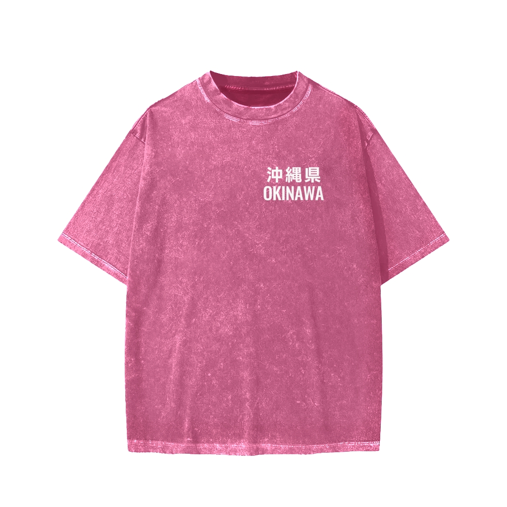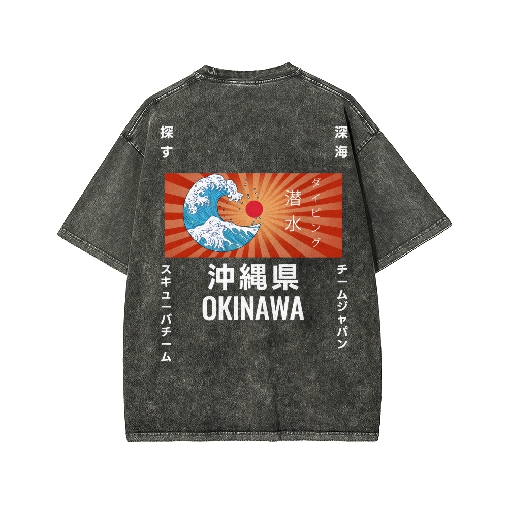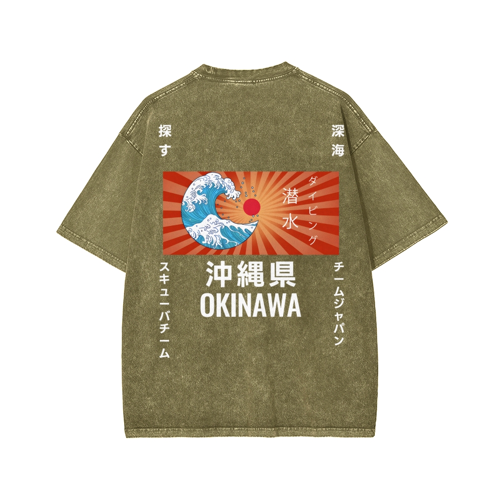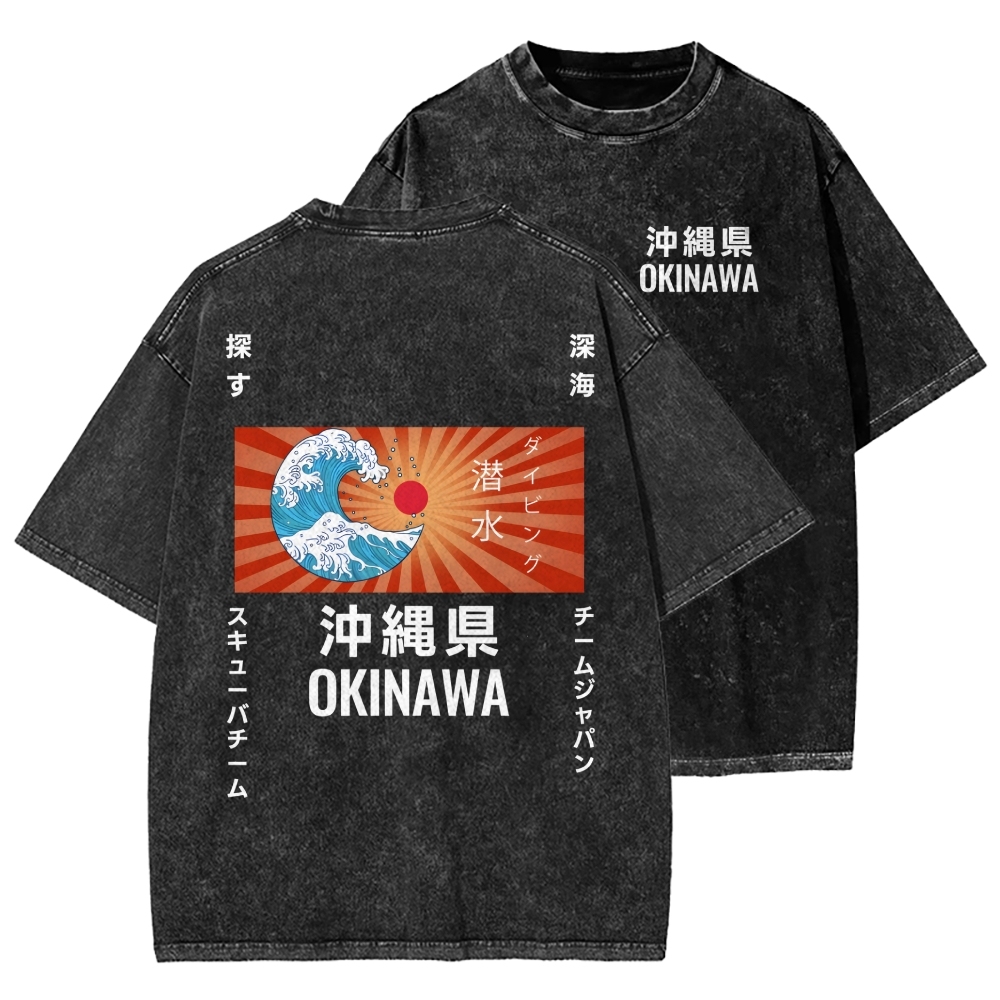 Okinawa Wave Vintage Front And Back Printing Washed T-shirt