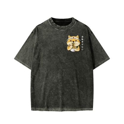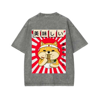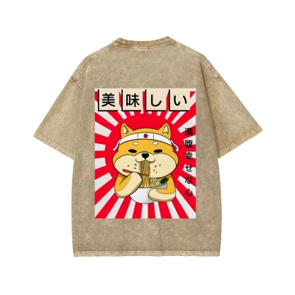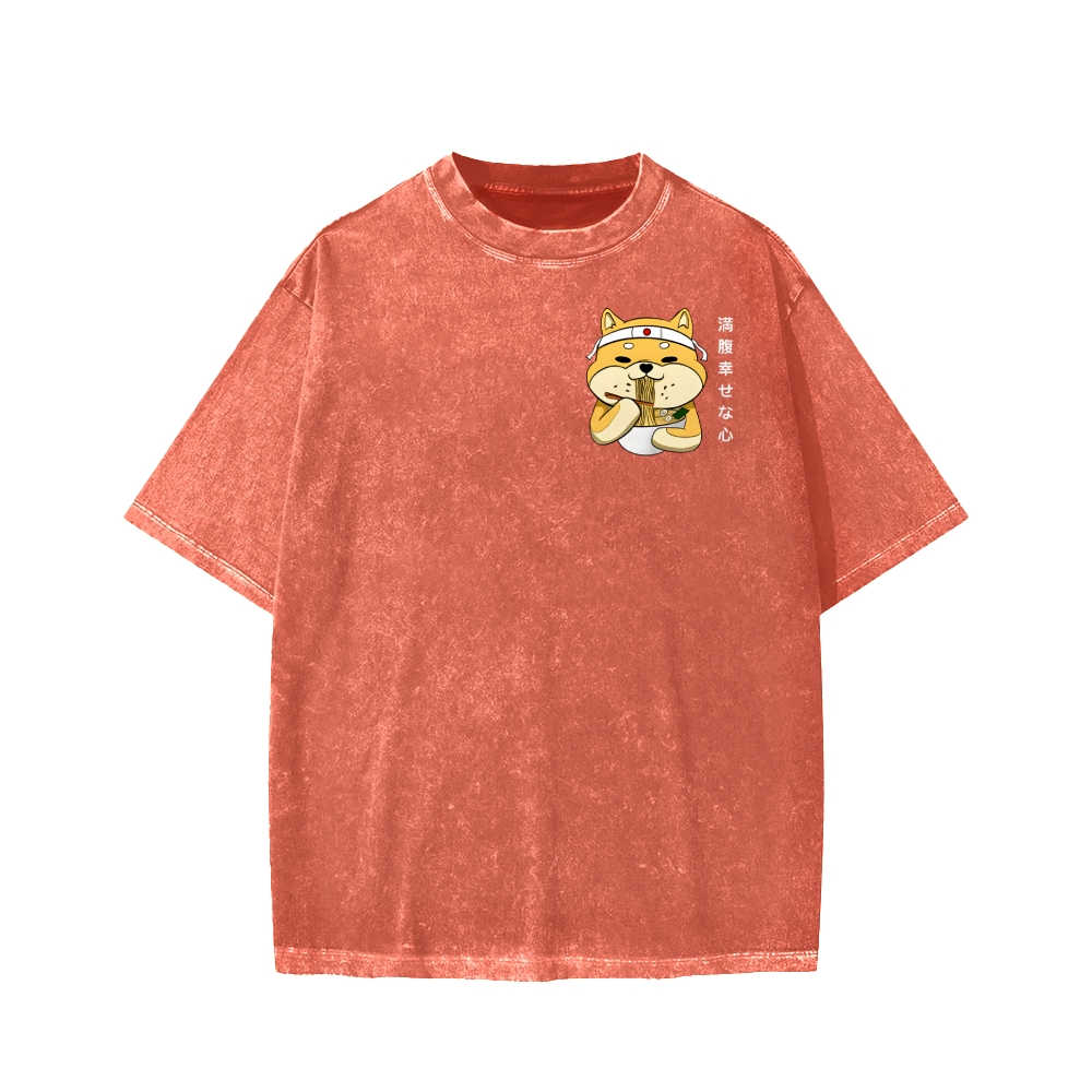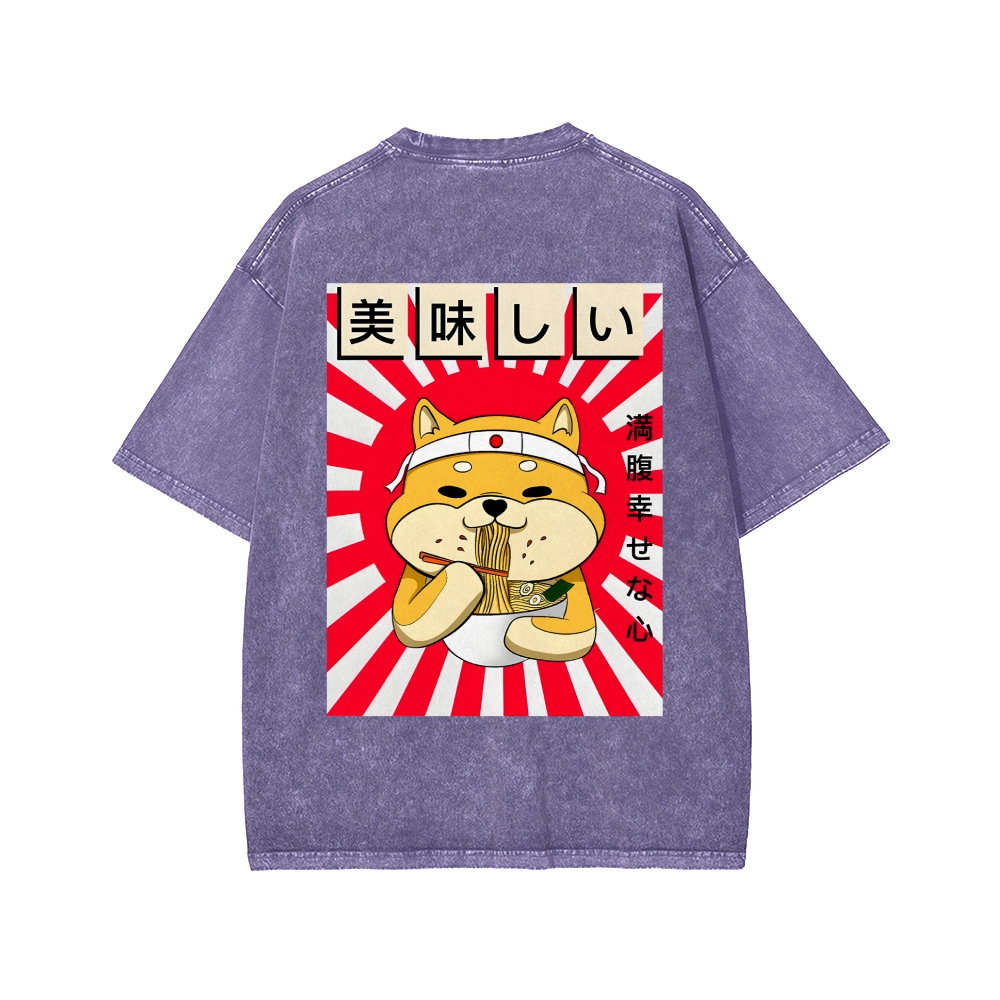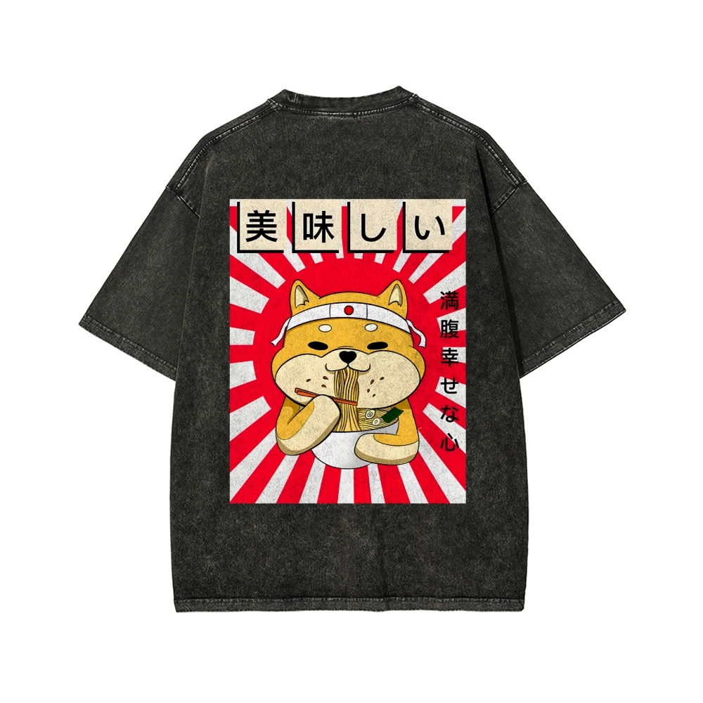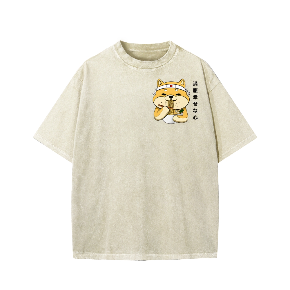 Ramen Shiba Front And Back Printing Washed T-shirt