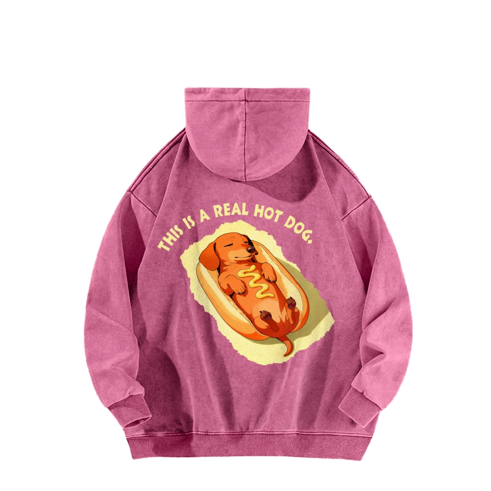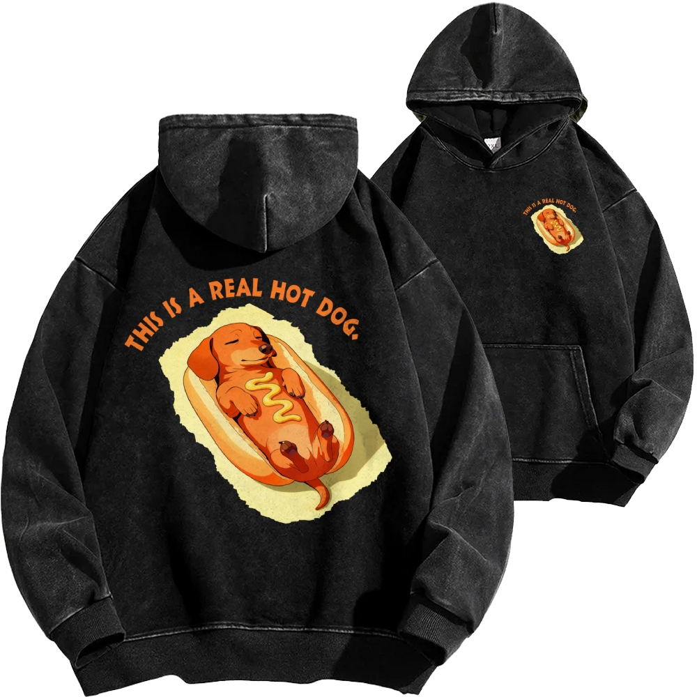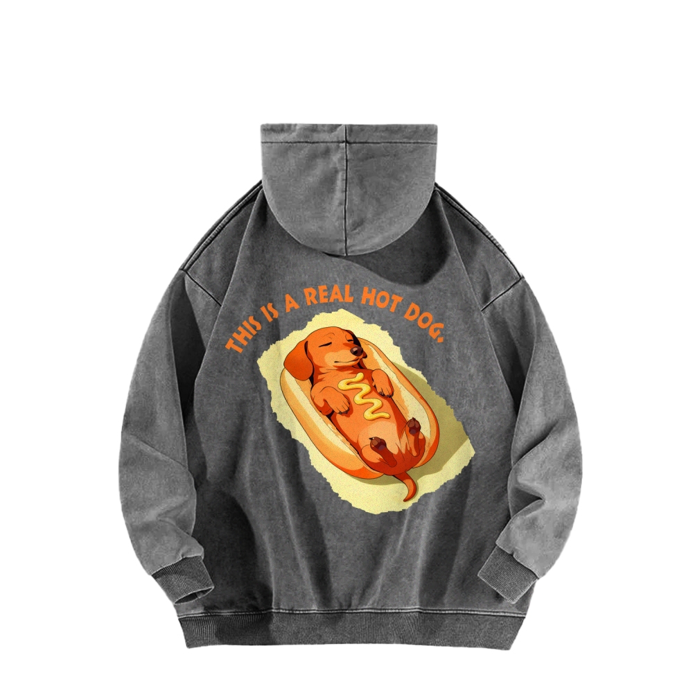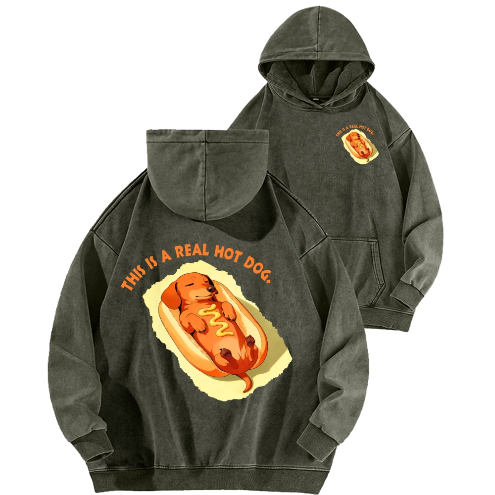 Real Hot Dog Front And Back Printing Vintage Washed Hoodie