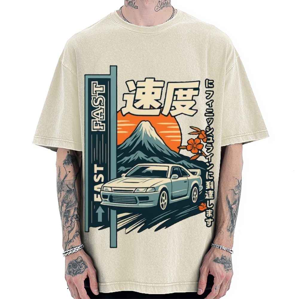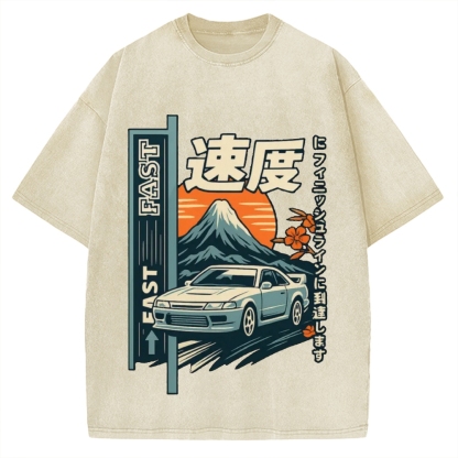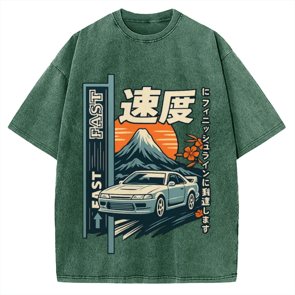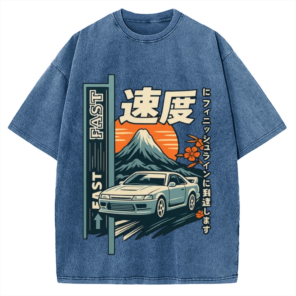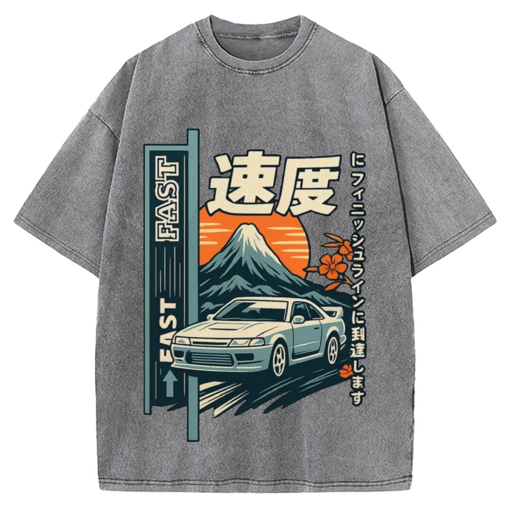 Retro Japanese JDM Car Racing Mount Fuji Vintage Washed T-shirt