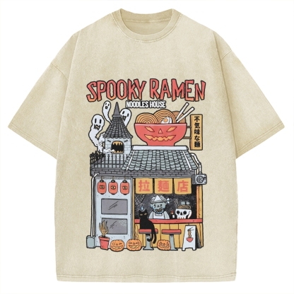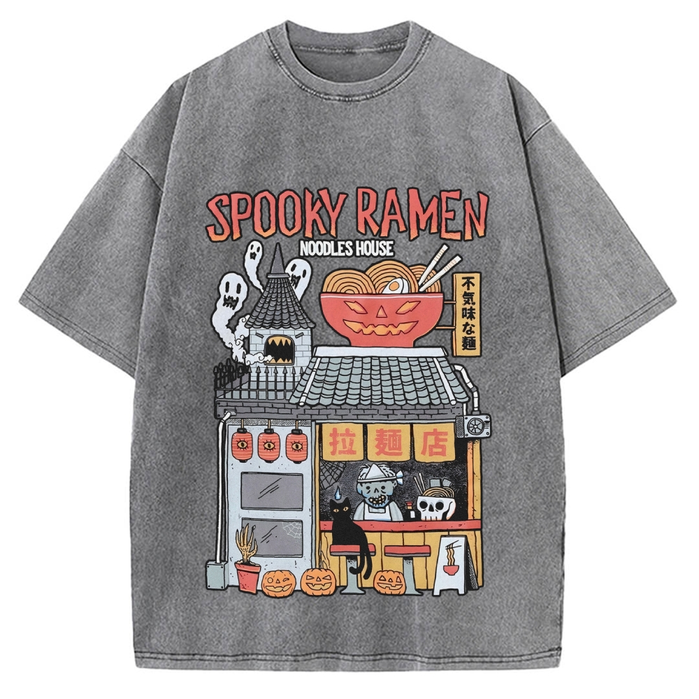Spooky Ramen Noodle House Ramen Japanese Halloween Skull Vintage Washed T-shirt