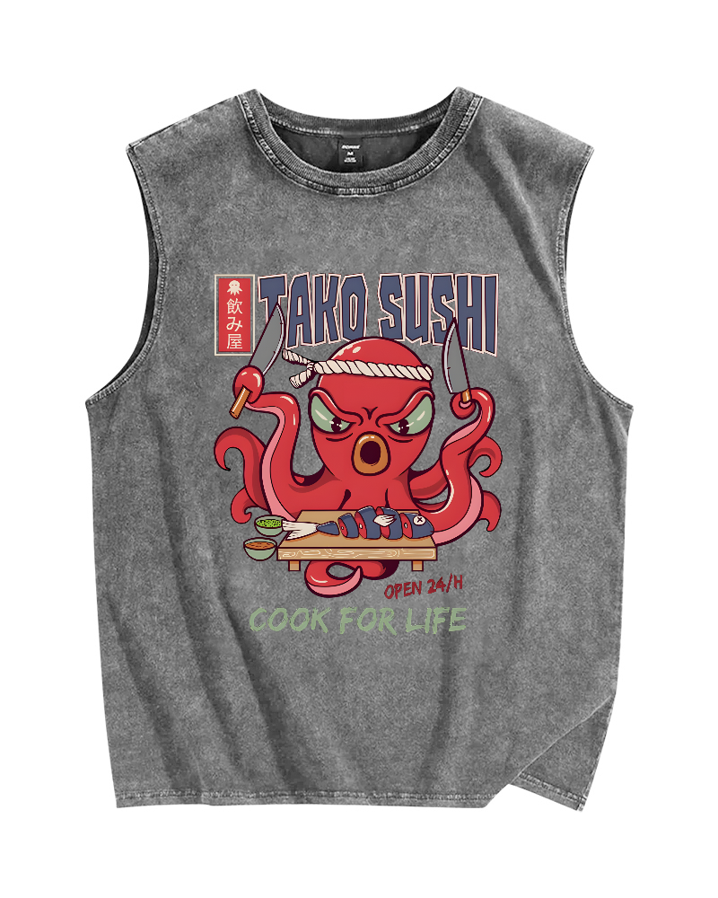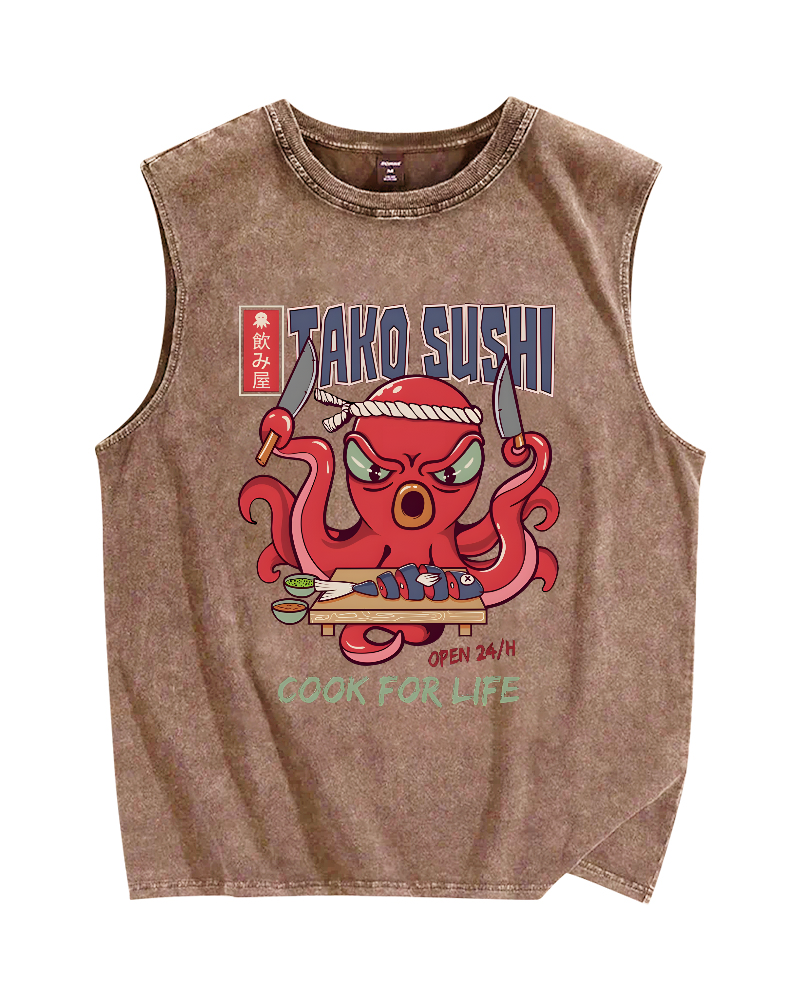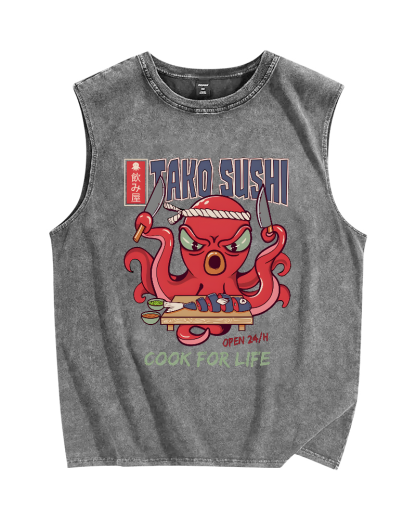 Tako Sushi Octopus Vintage Distressed Washed Tank Top