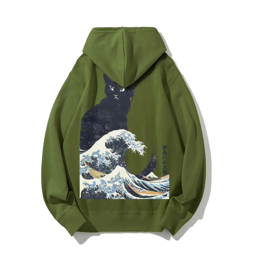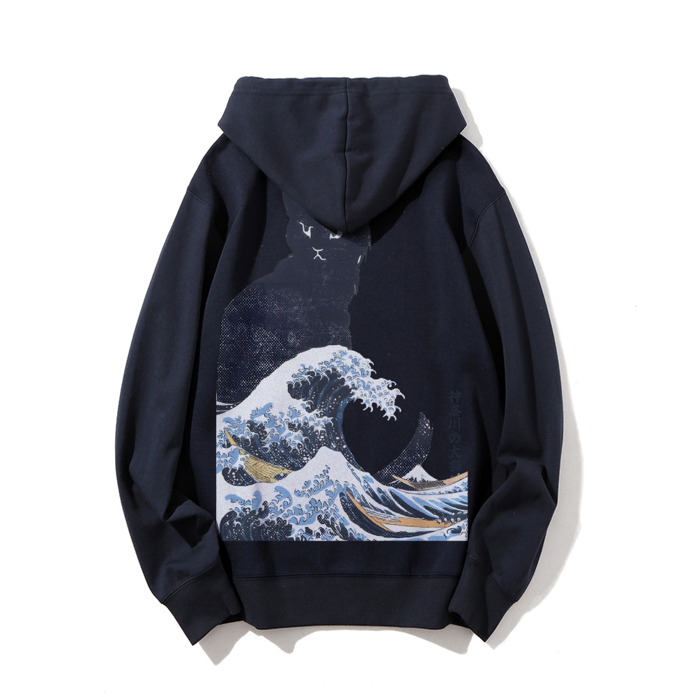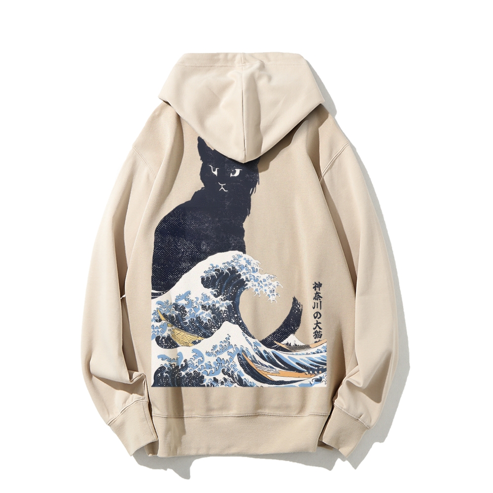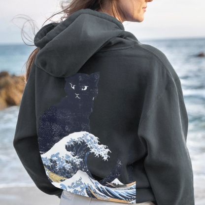 The Great Wave Off Cat Printed Back Cotton Hoodie