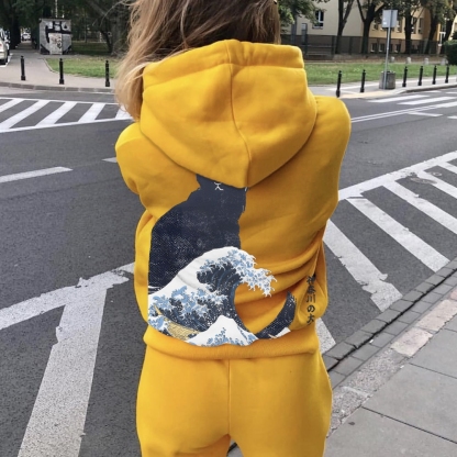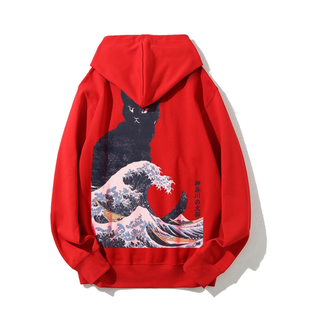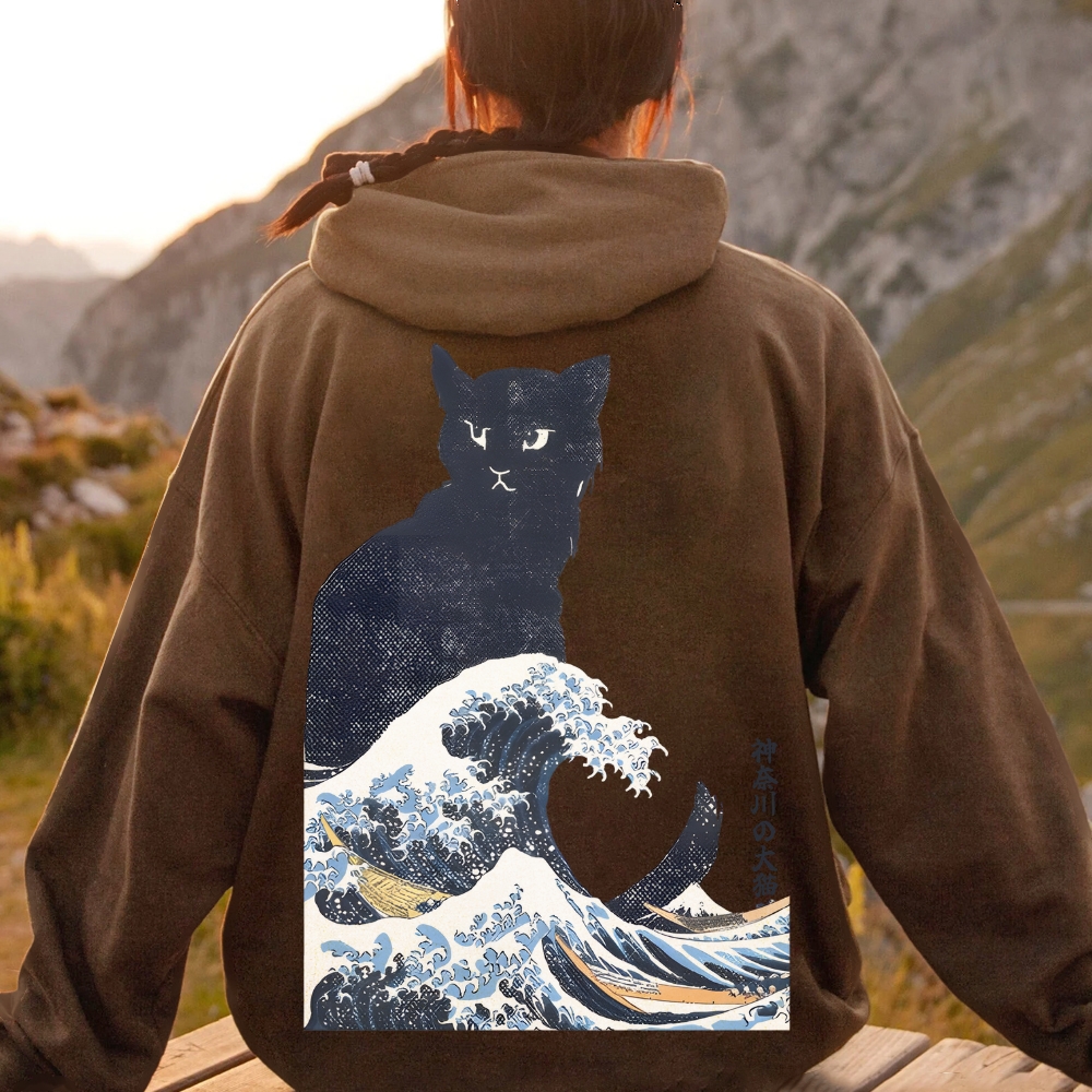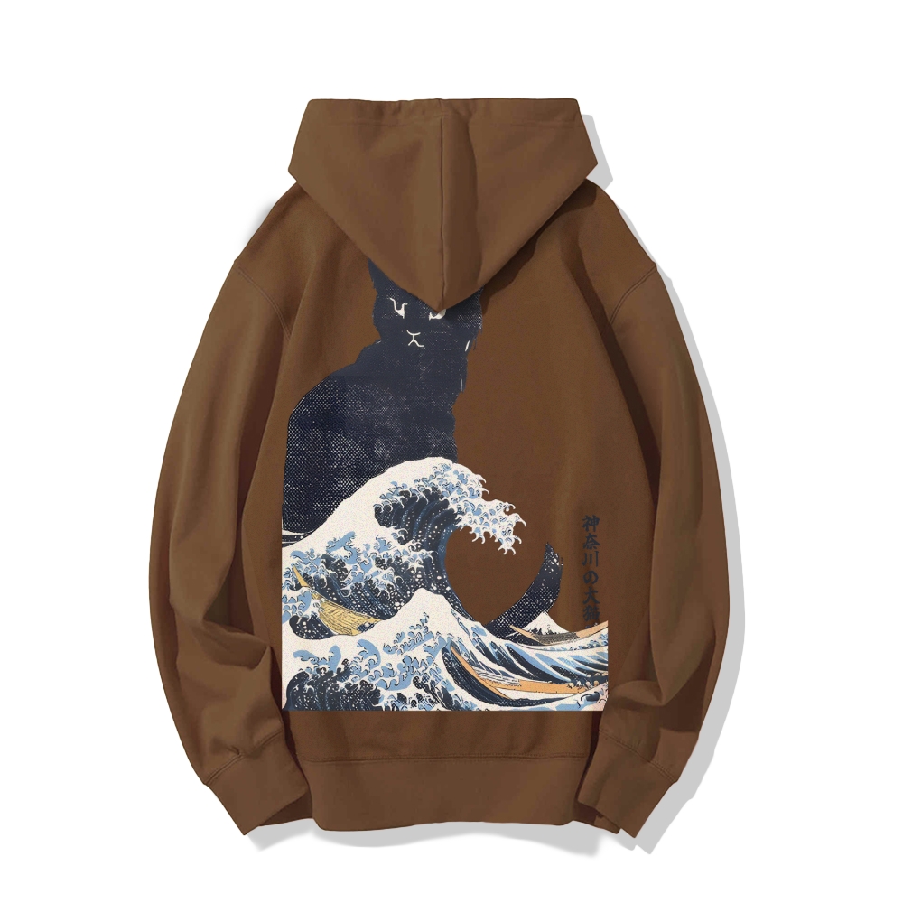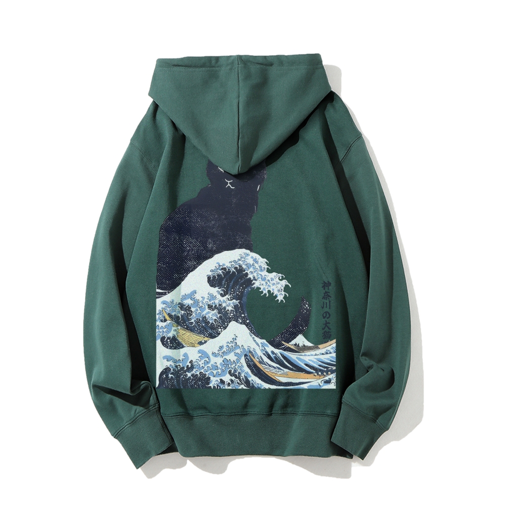 The Great Wave Off Cat Printed Back Cotton Hoodie