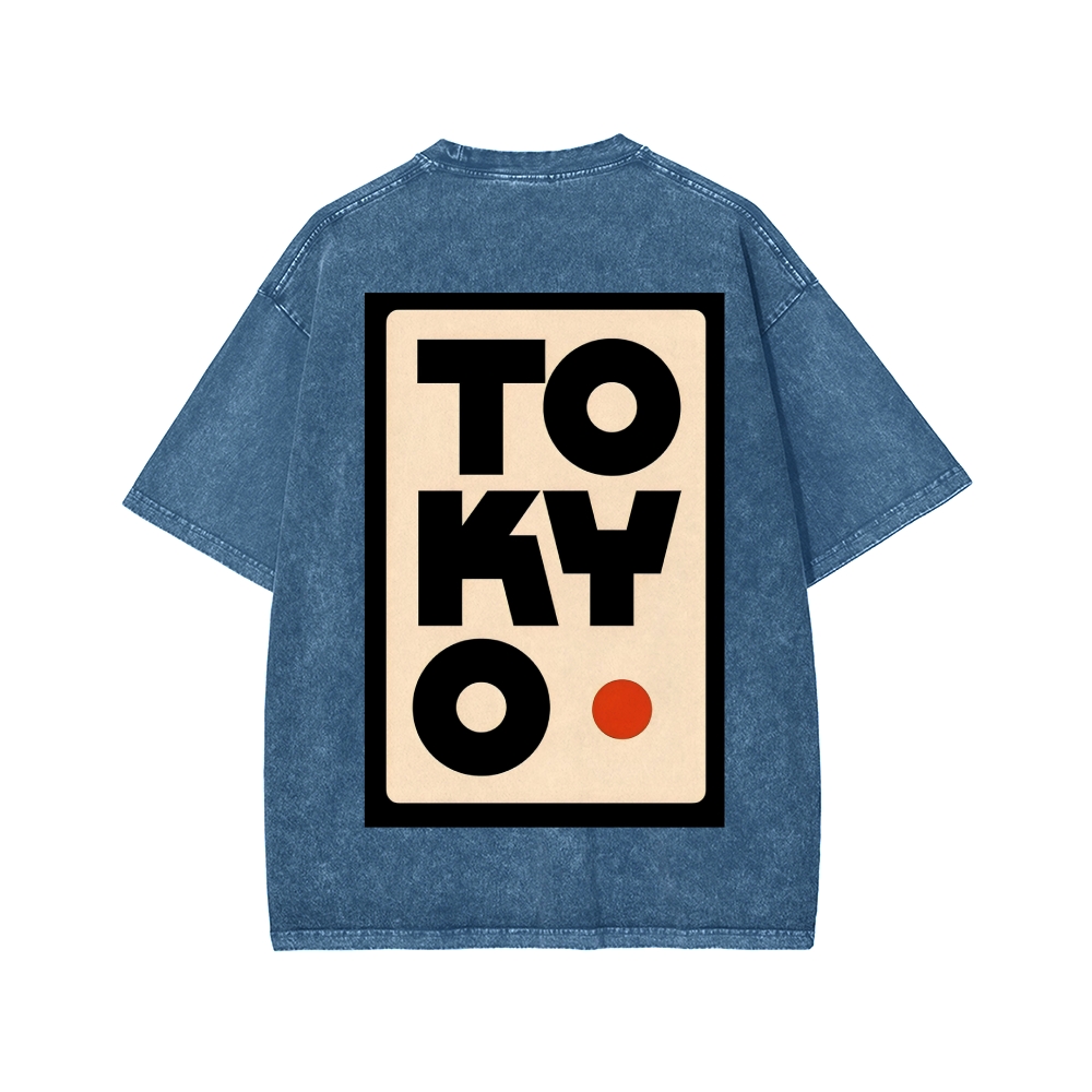 Tokyo Front And Back Printing Washed T-shirt