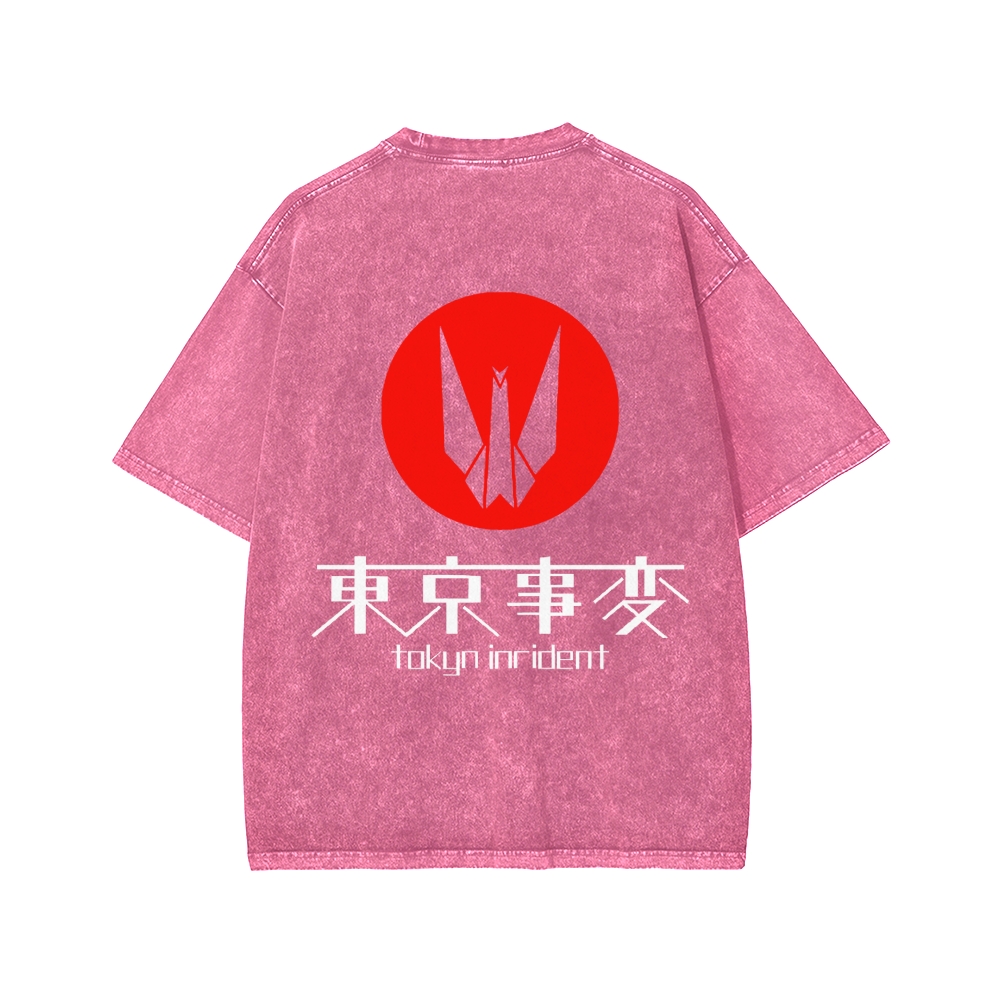 Tokyo Incidents Band Front And Back Printing Washed T-shirt