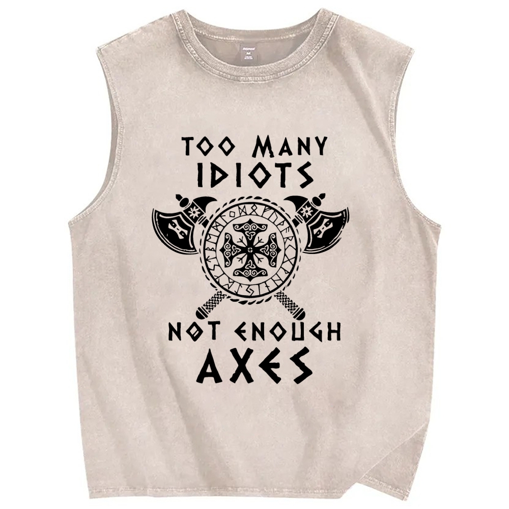 Too Many Idiots Not Enough Axes Vintage Distressed Washed Tank Top