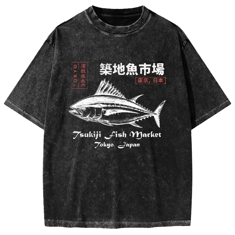 Tsukiji Market Tuna 築地市場 マグロ Vintage Washed T-shirt