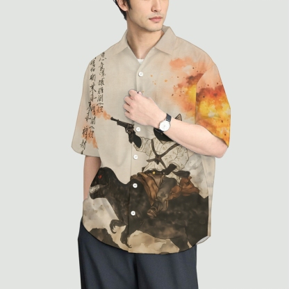 Vintage Cat Riding Dinosaur Button-up Shirt 2509001067