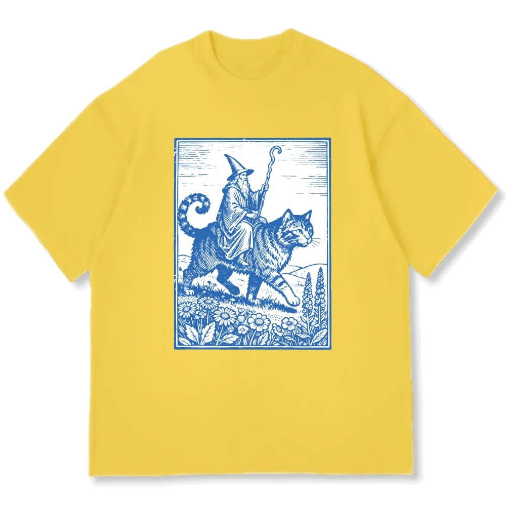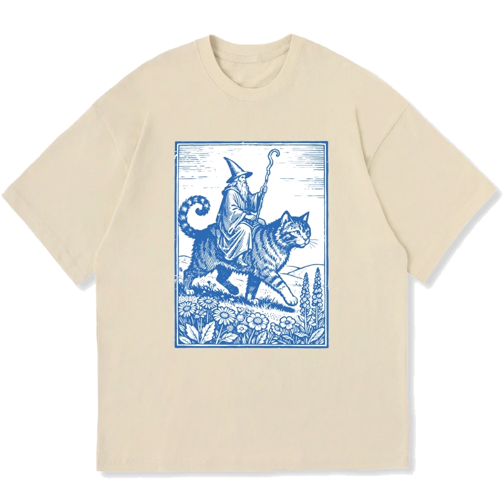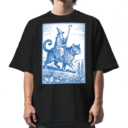 Wizard Cat Rider Cotton casual T-shirt