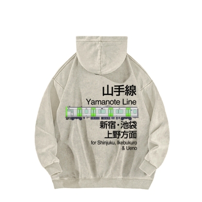 Yamanote Line Japan Train Front And Back Printing Vintage Washed Hoodie