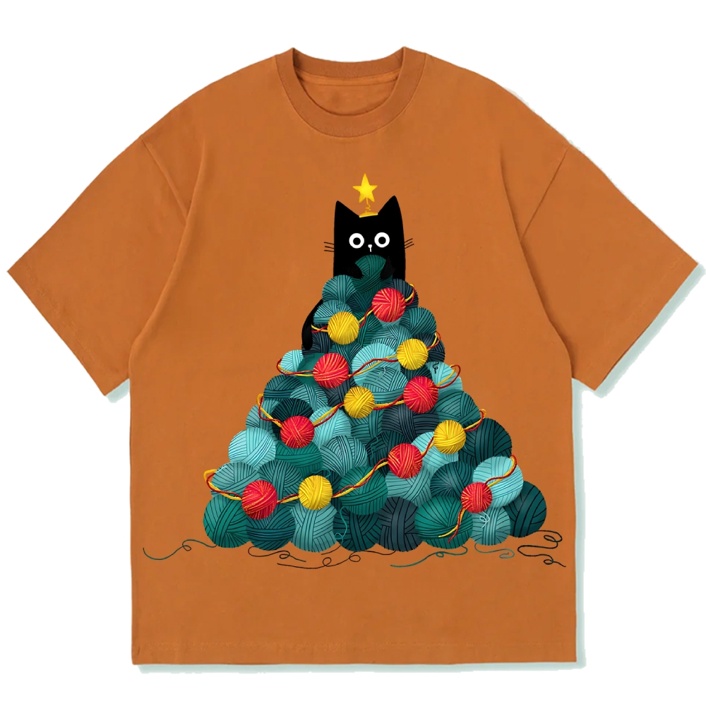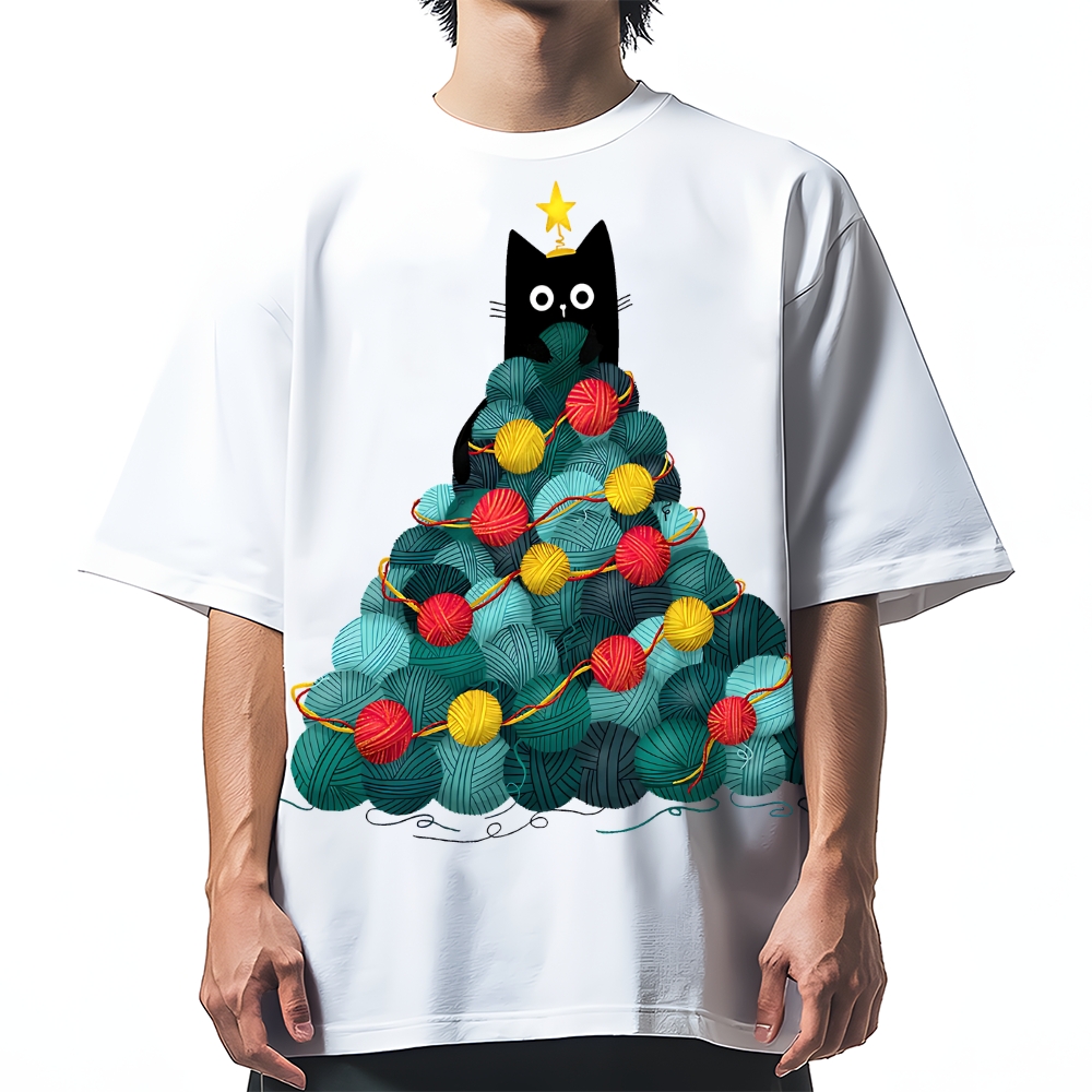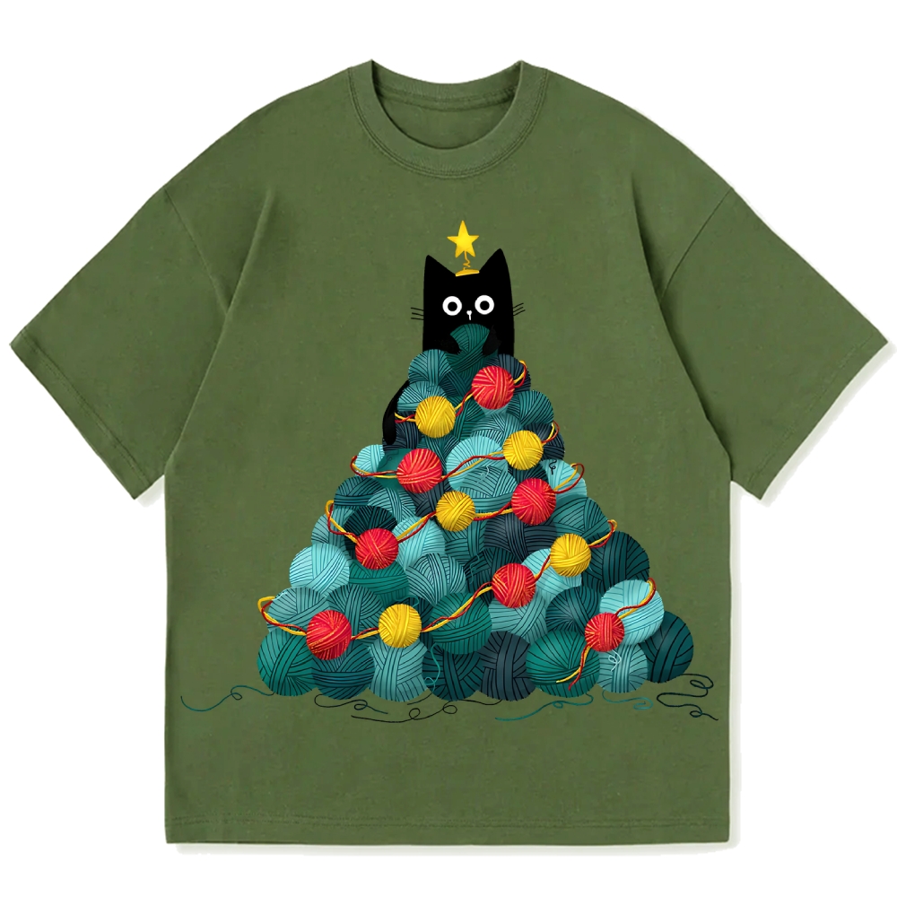 Yarn Christmas Tree Cat Cotton casual T-shirt