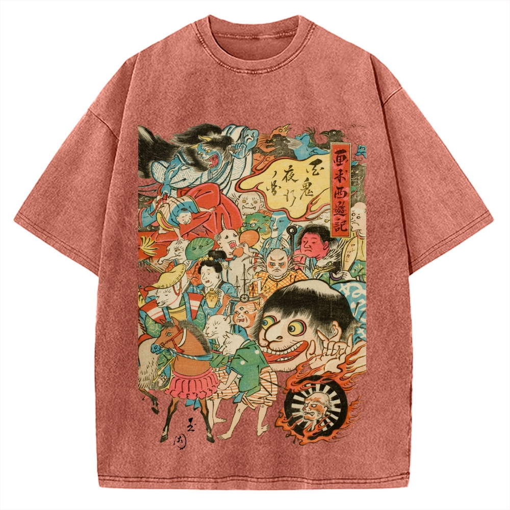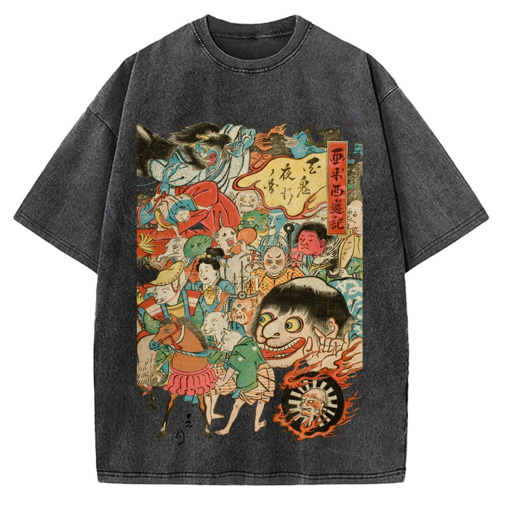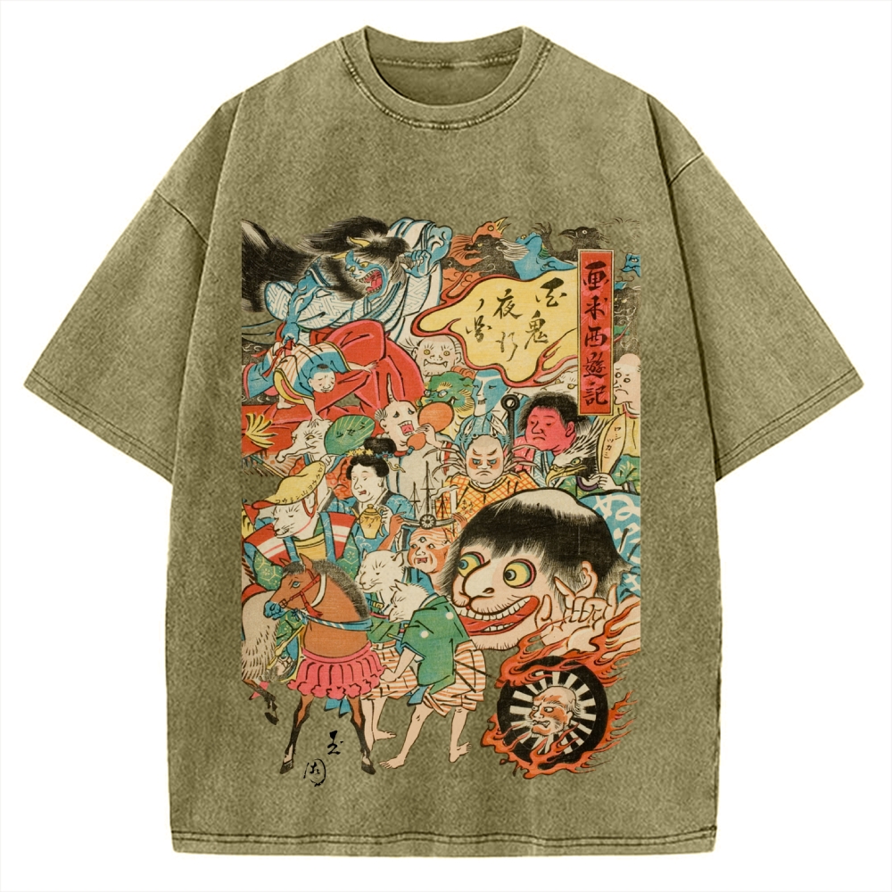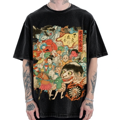 Yokai Japanese Ghost Hyakki Yagyō Veritable Pandemonium Vintage Washed T-shirt