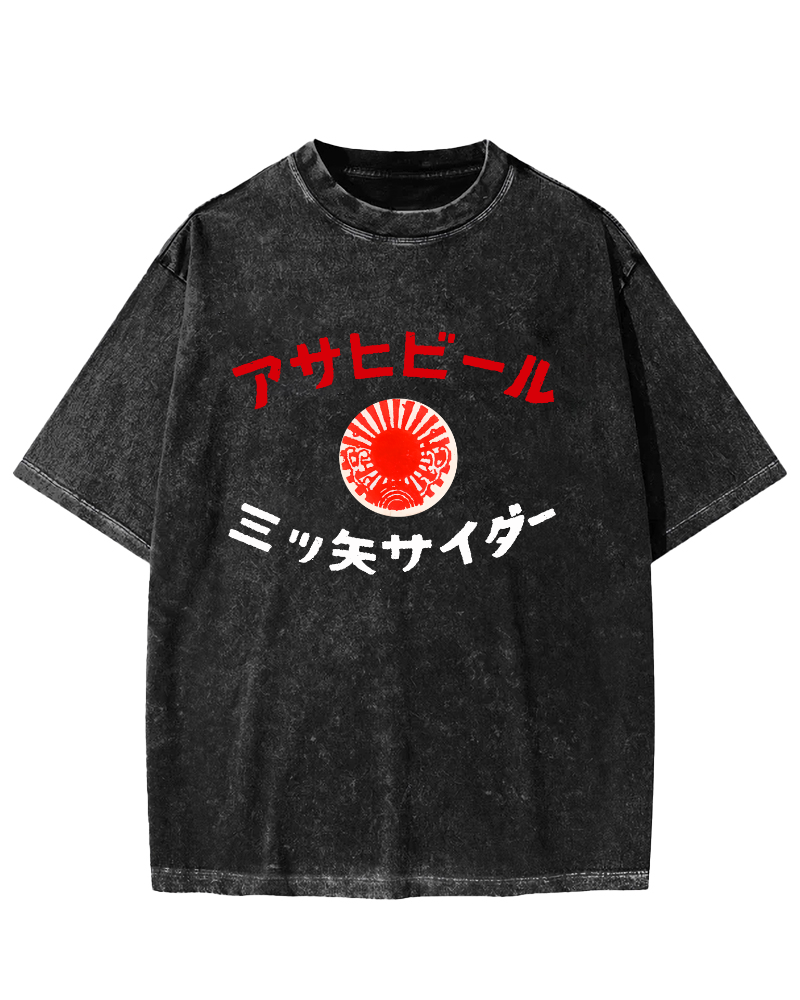 Japanese Harajuku kanji Vintage Washed T-shirt