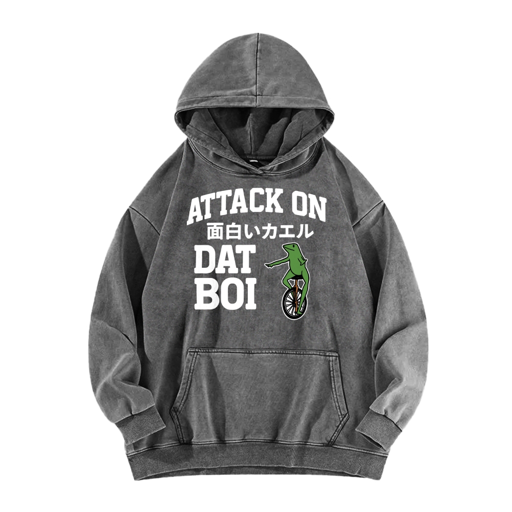 Attack on Funny Frog Dat Boi Vintage Washed Hoodie