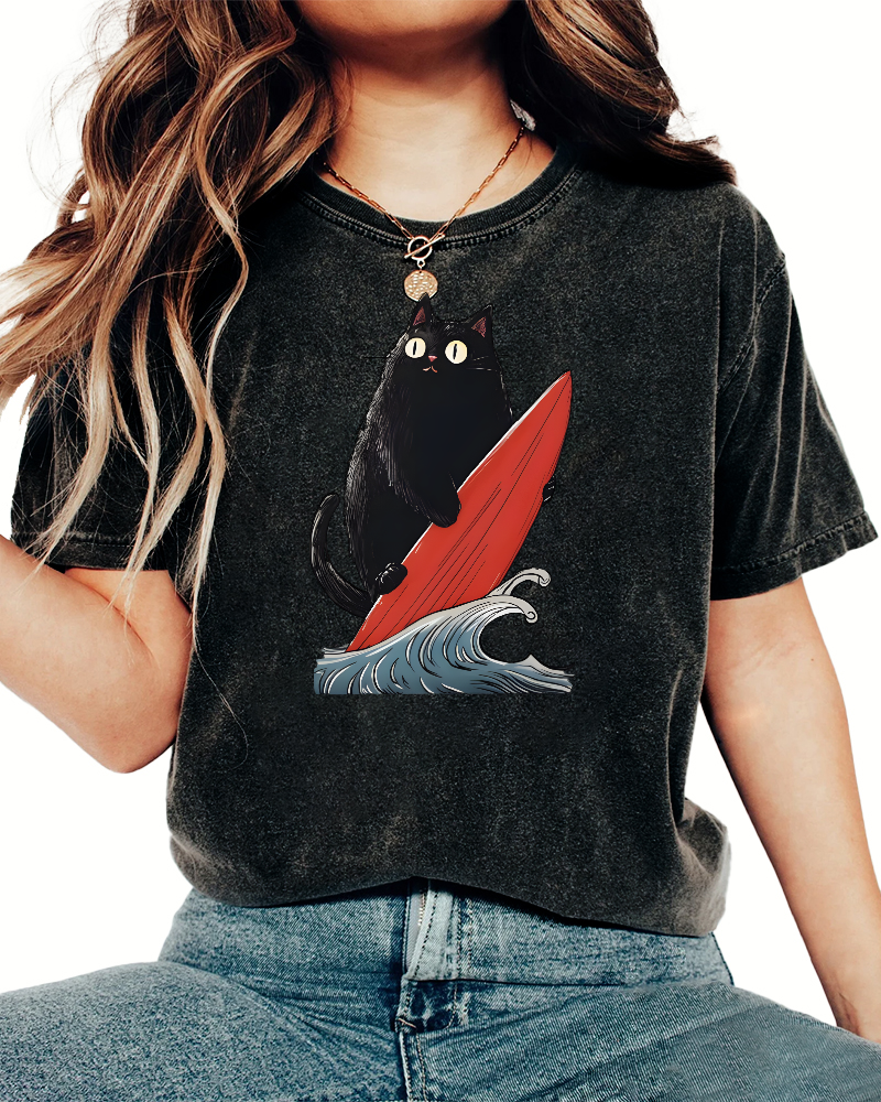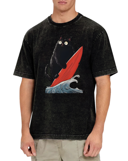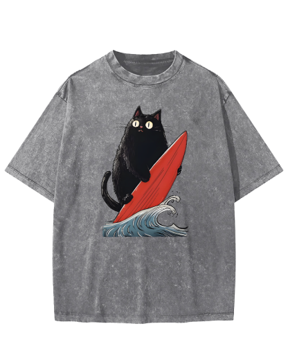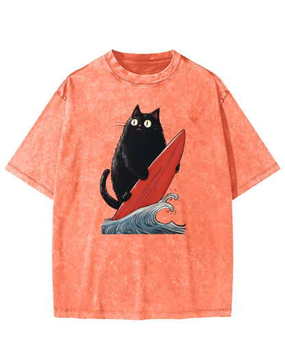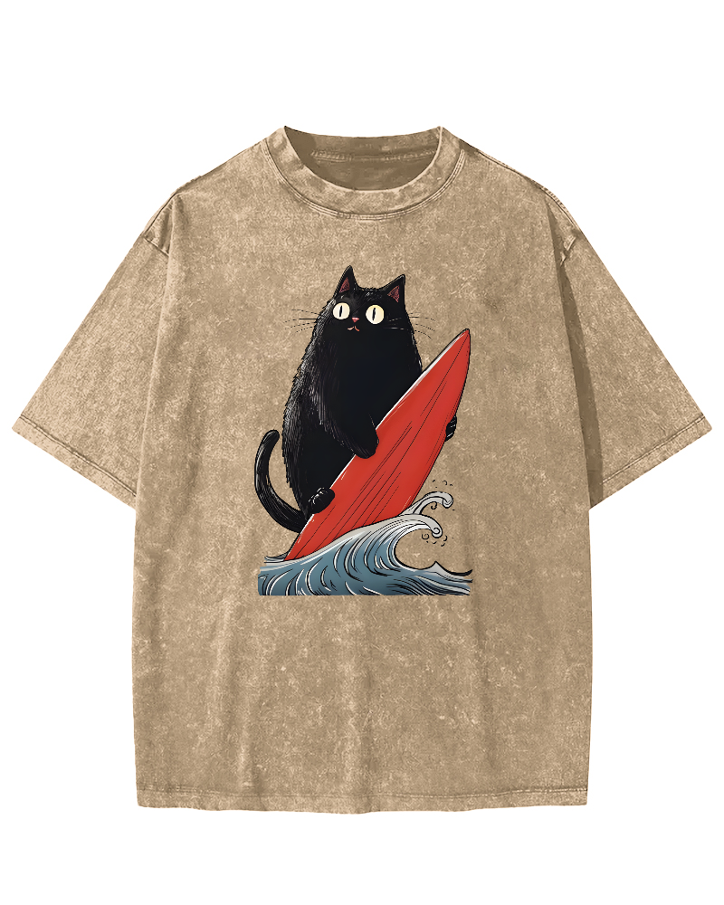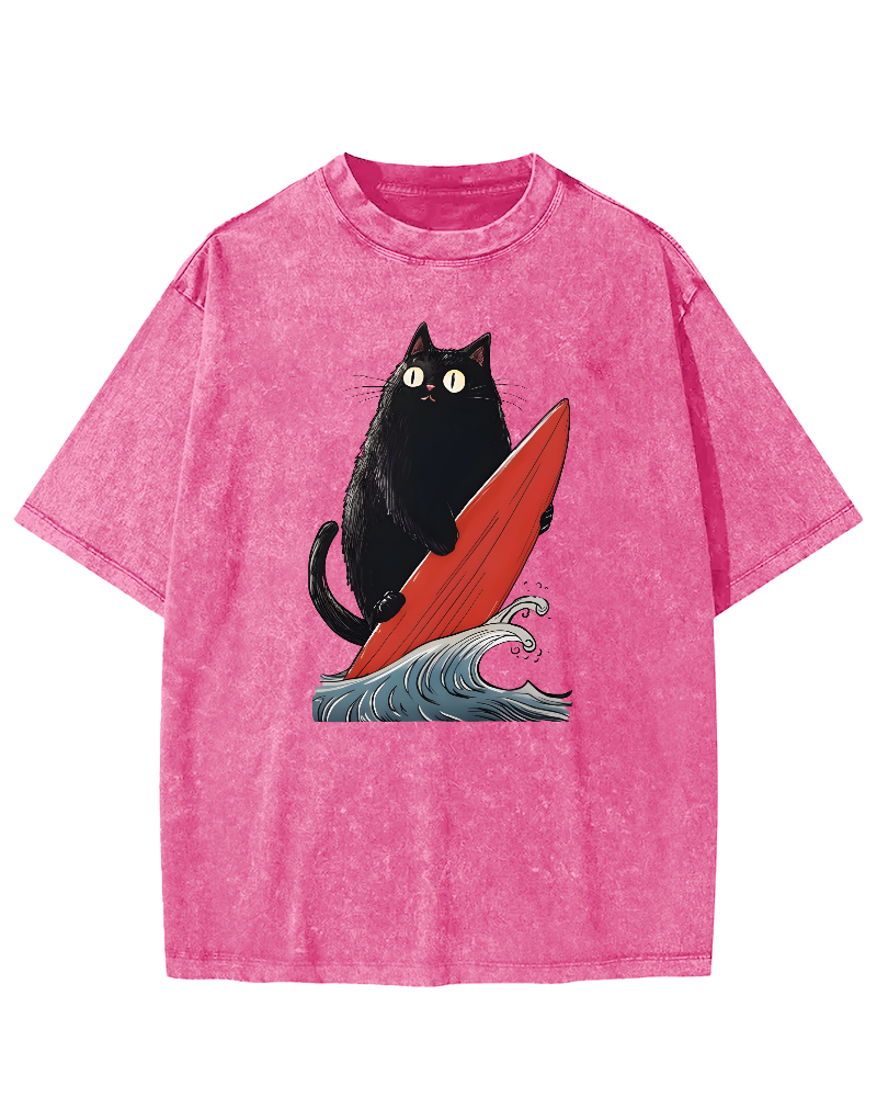 Black Cat Surfer Vintage Washed T-shirt