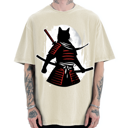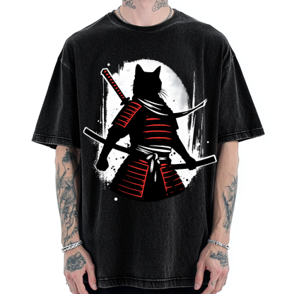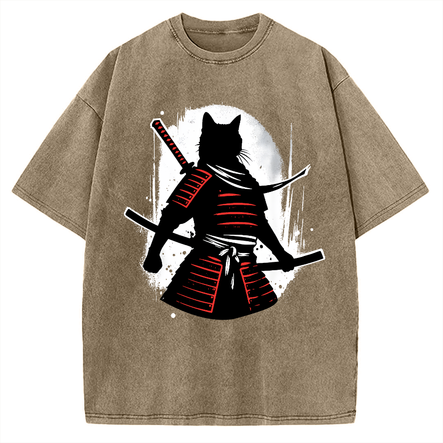 Cat Samurai Warrior Vintage Washed T-shirt