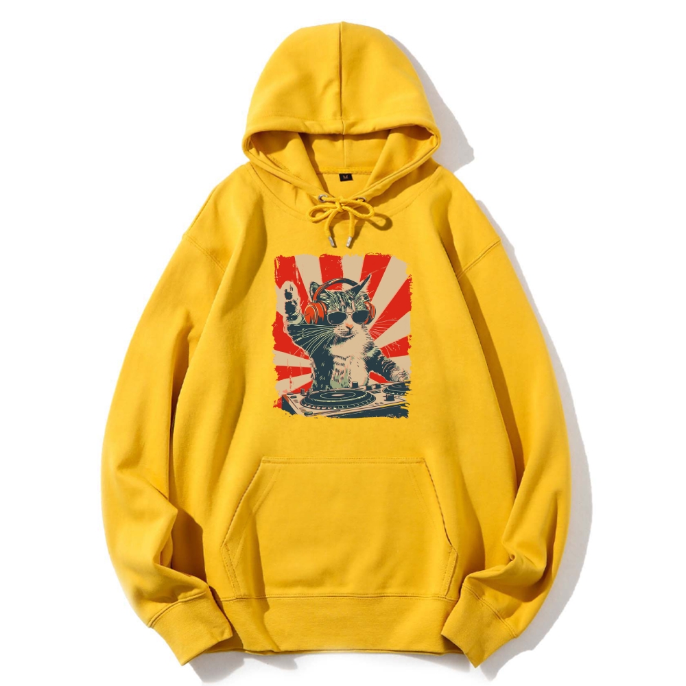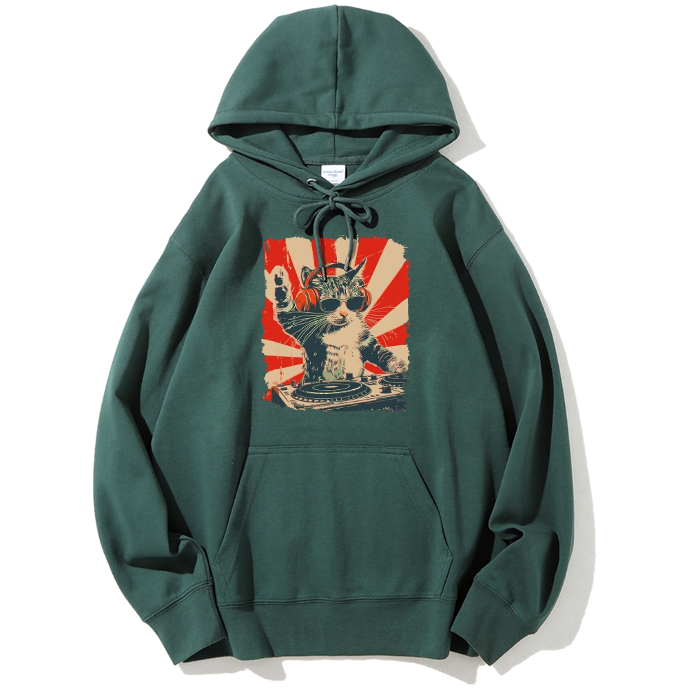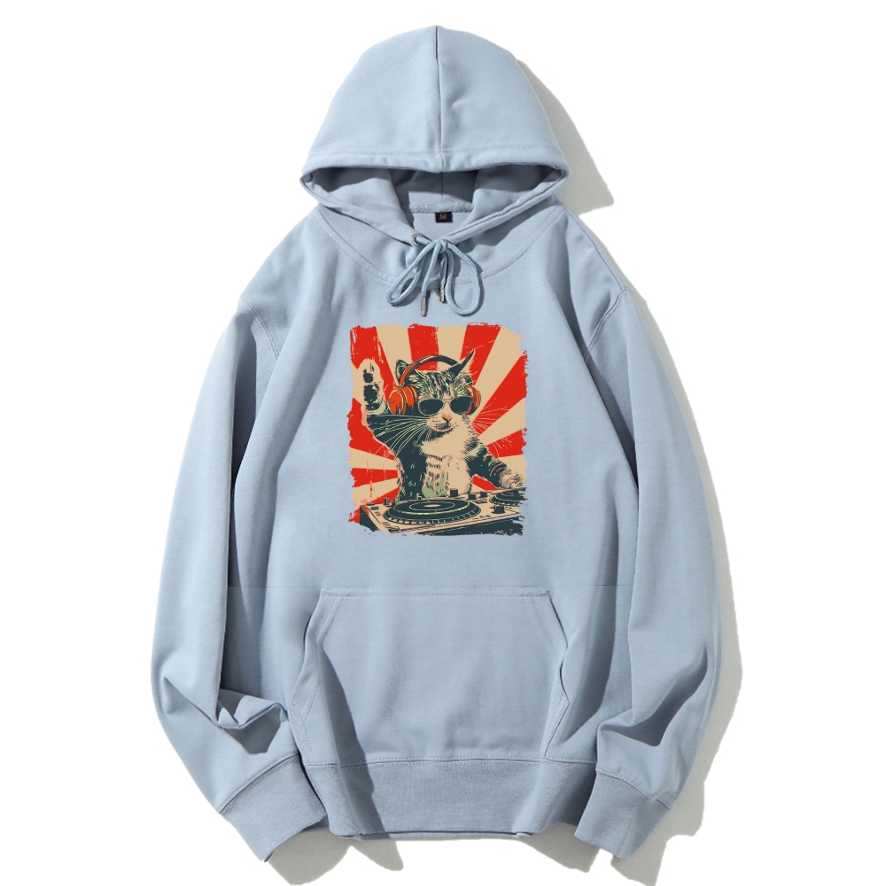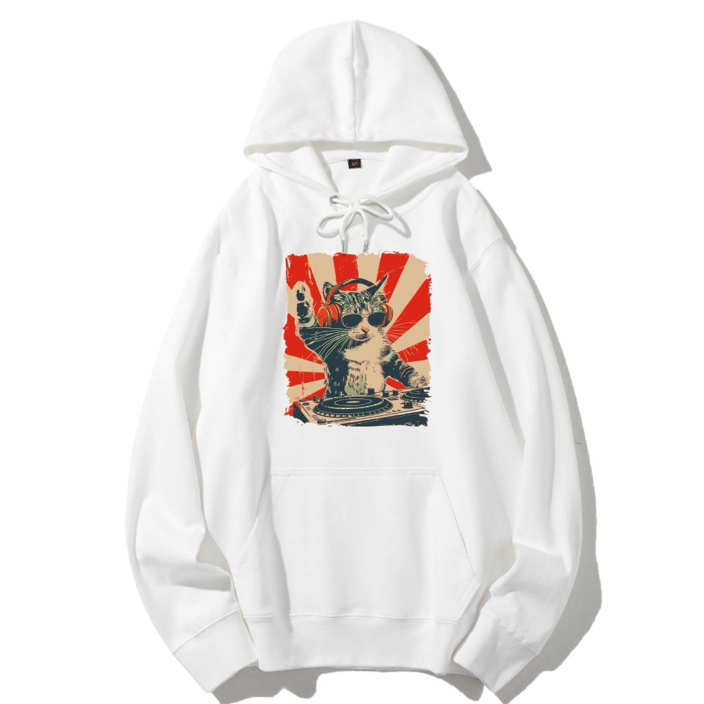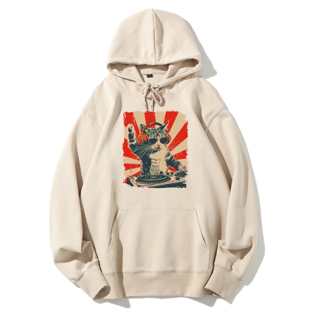 Cool Cat DJ Poster Showa Retro Cotton Hoodie