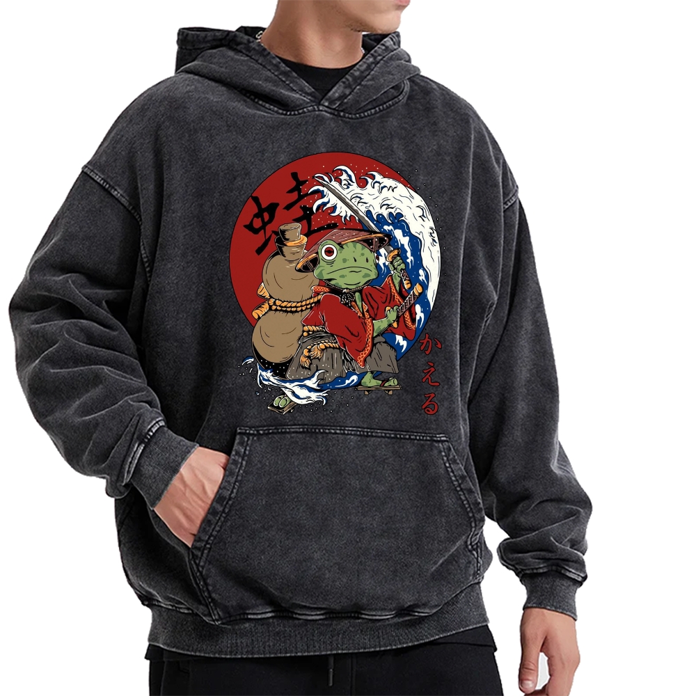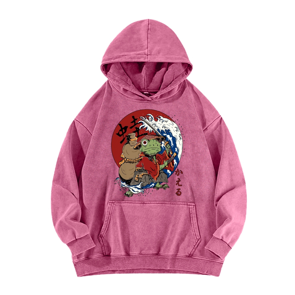 Frog Samurai Vintage Washed Hoodie