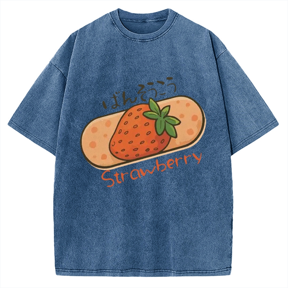 Strawberry Bandage Kawaii Japanese Vintage Washed T-shirt