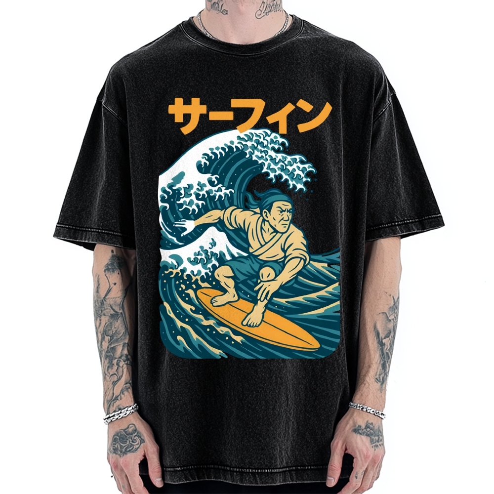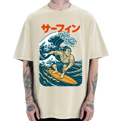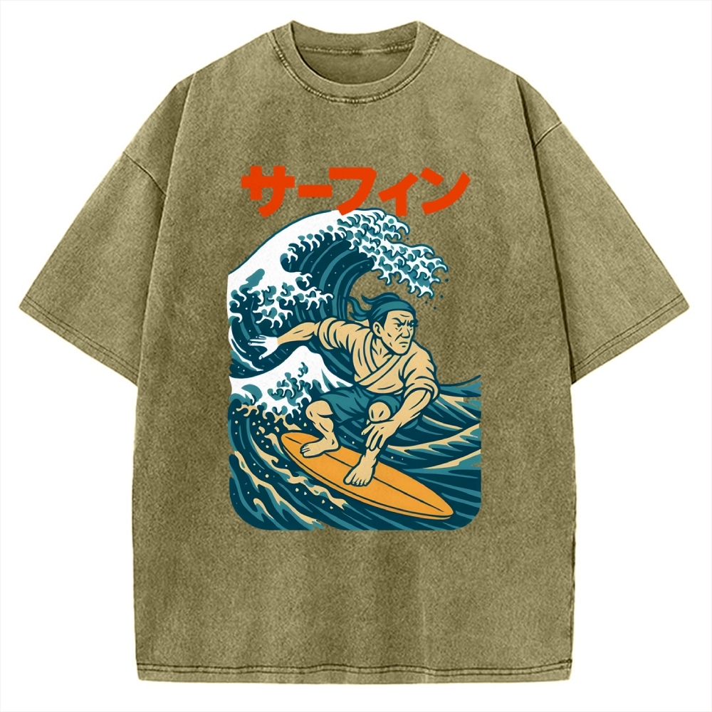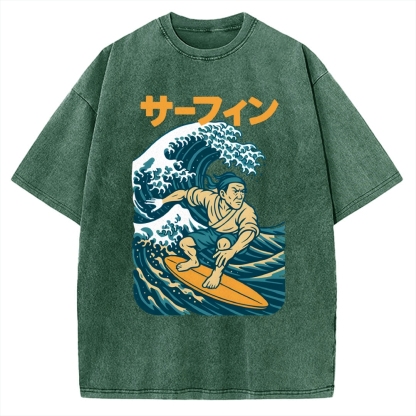 Surf Samurai Ukiyo-E Style Vintage Washed T-shirt