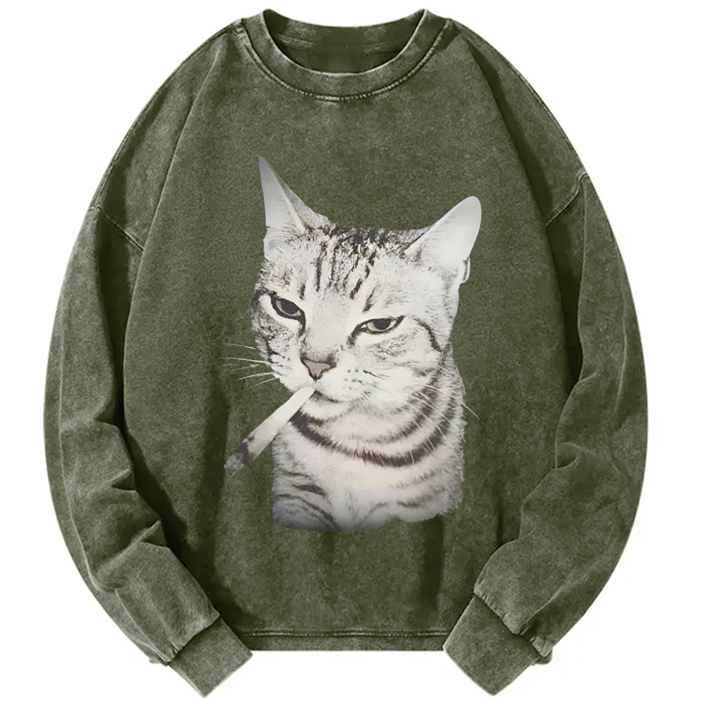 Vintage Smoking Cat Meme Vintage Washed Sweatshirts