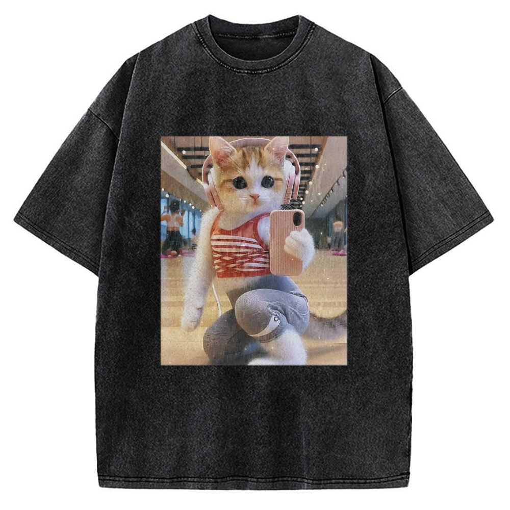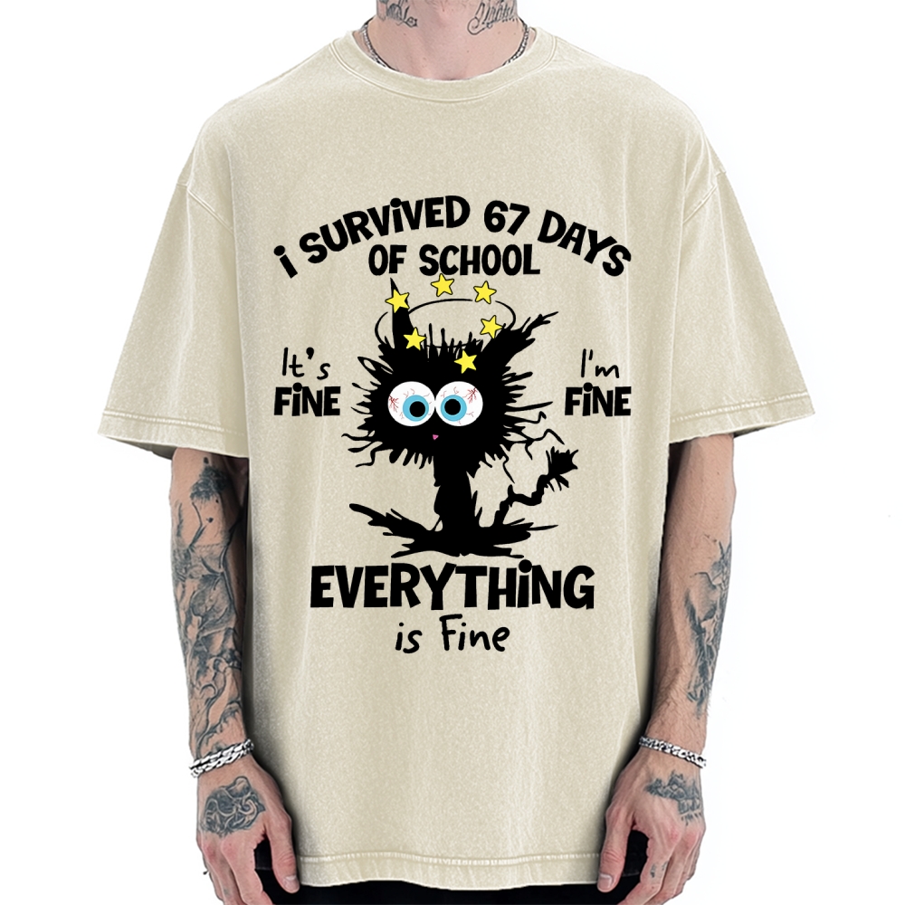 Cat I Survived 67 Days of School Funny Six Seven Meme Vintage Washed T-shirt