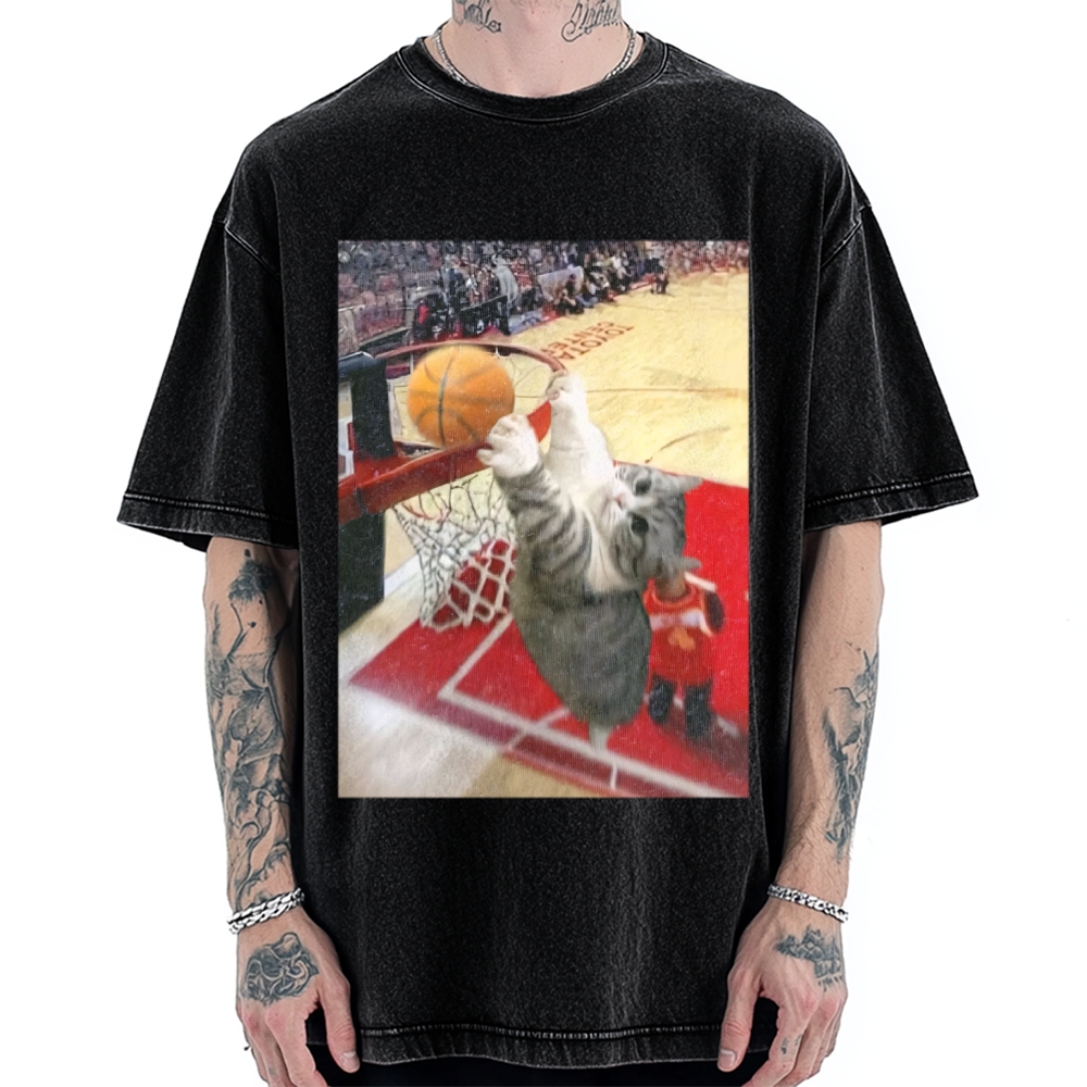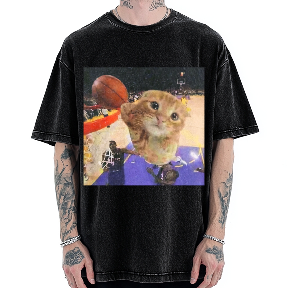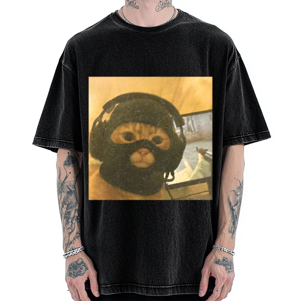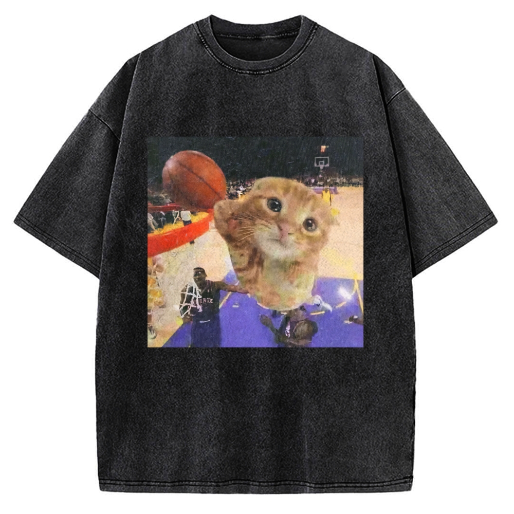 A Black Cat Accidentally Enters Van Gogh's Sunflower Painting. Vintage Washed T-shirt