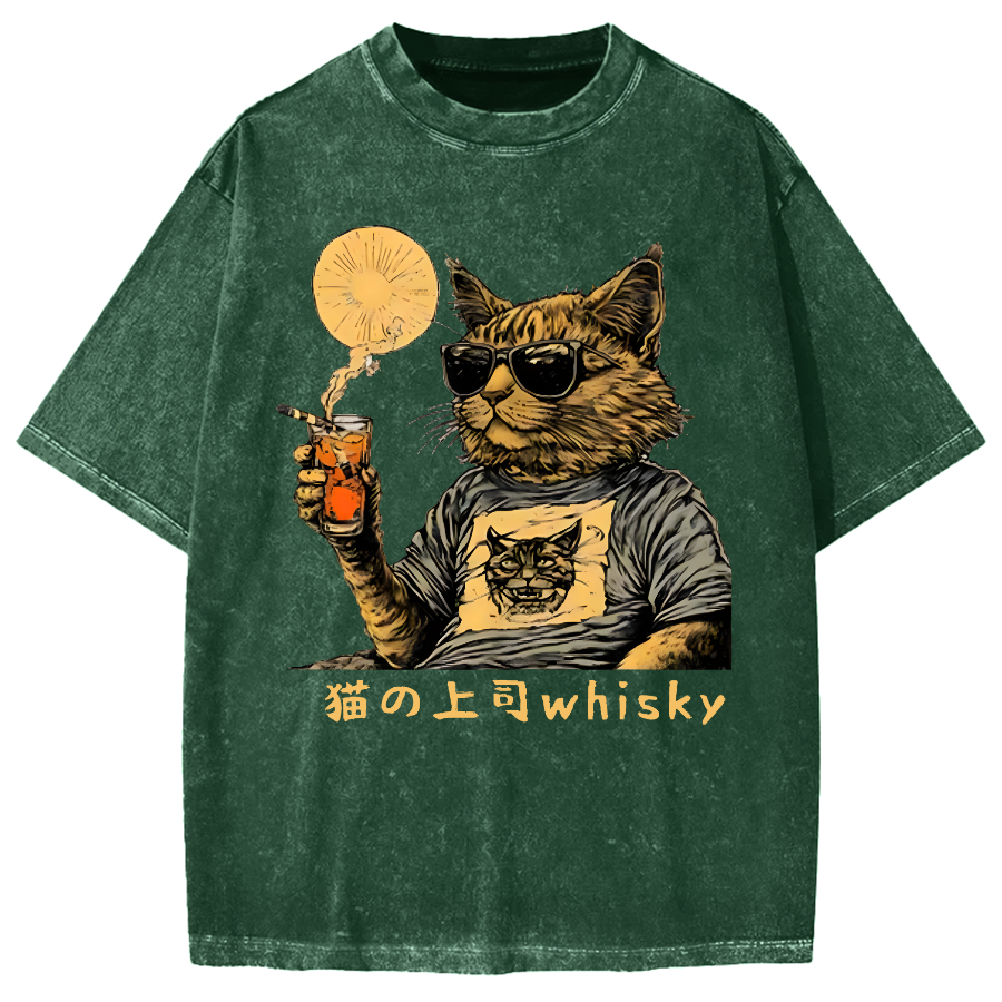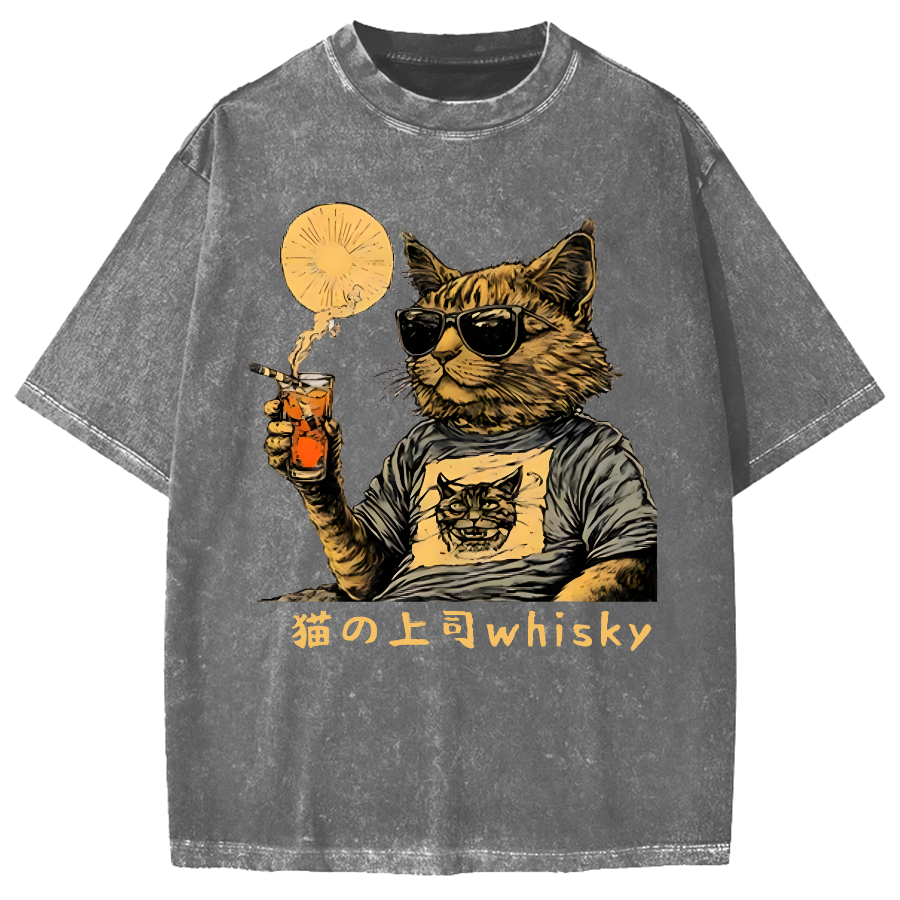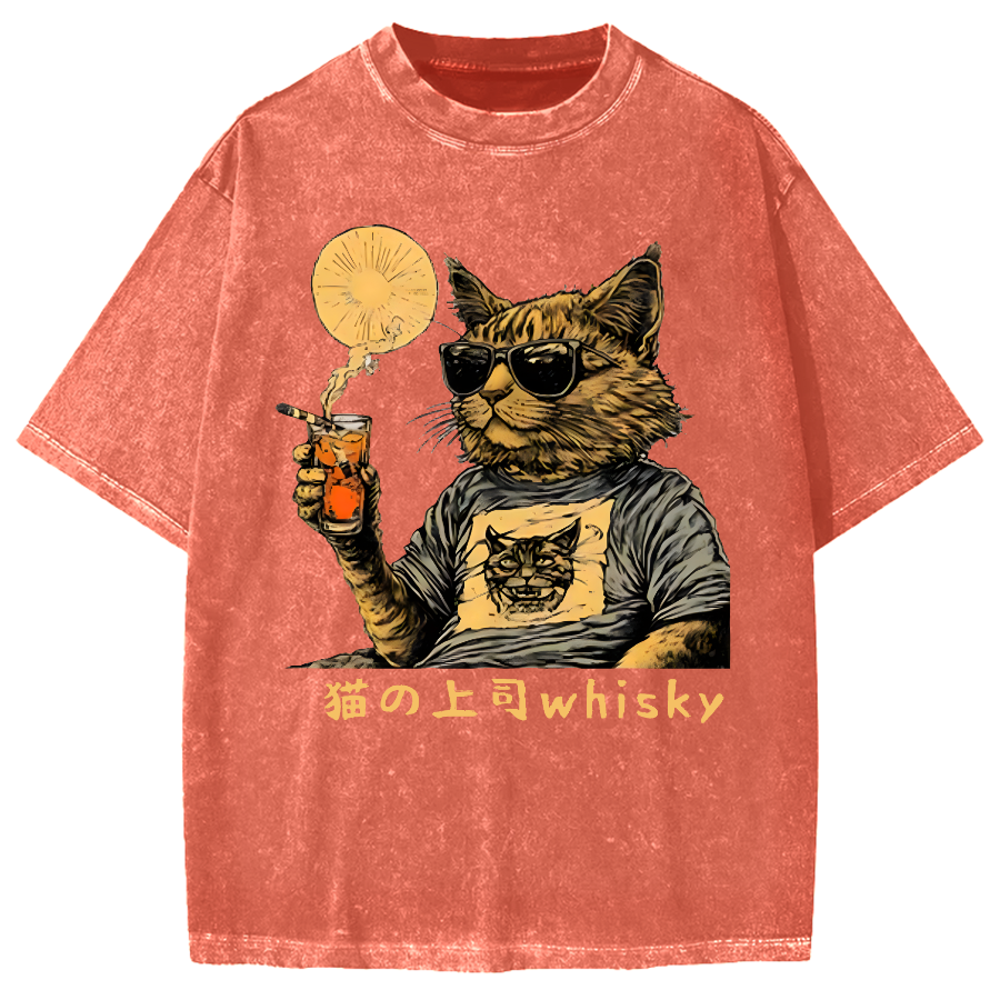 Cat Drinking Whiskey Vintage Washed T-shirt
