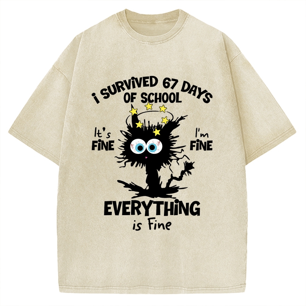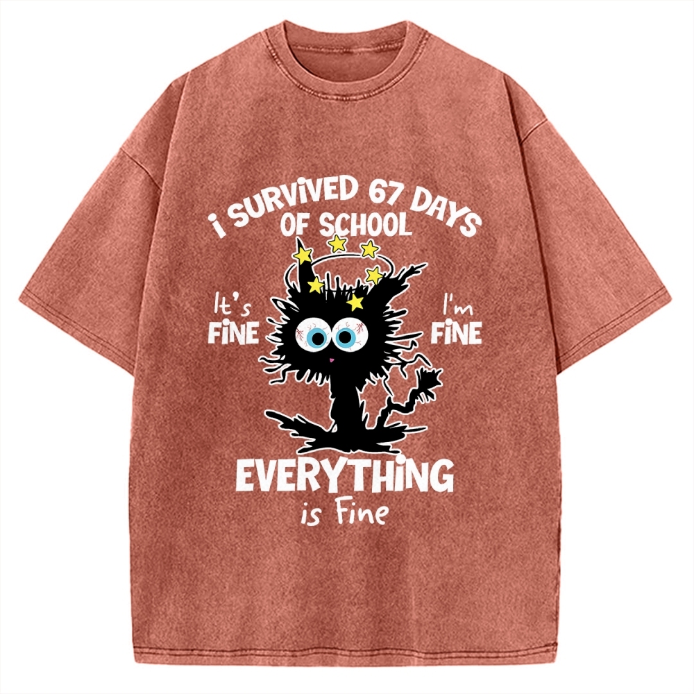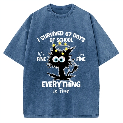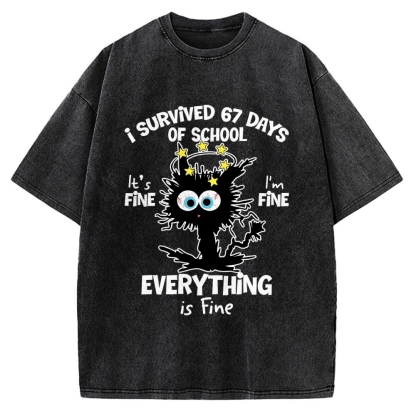 Cat I Survived 67 Days of School Funny Six Seven Meme Vintage Washed T-shirt