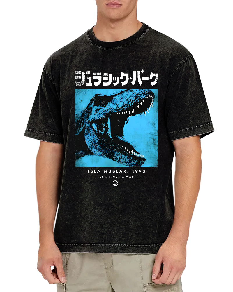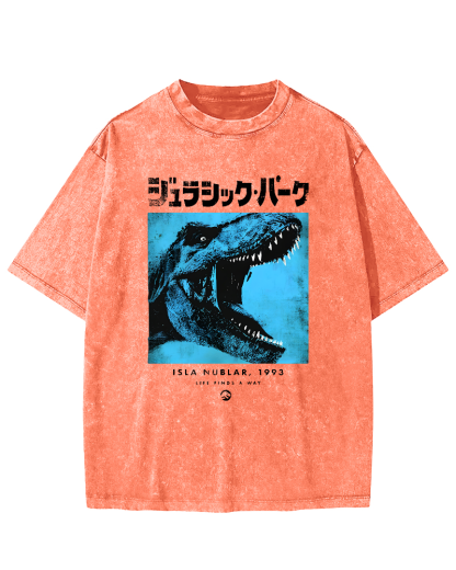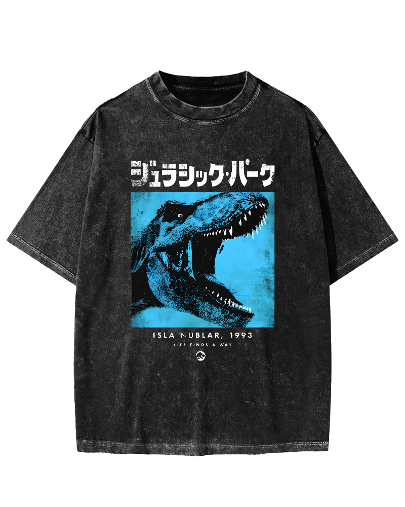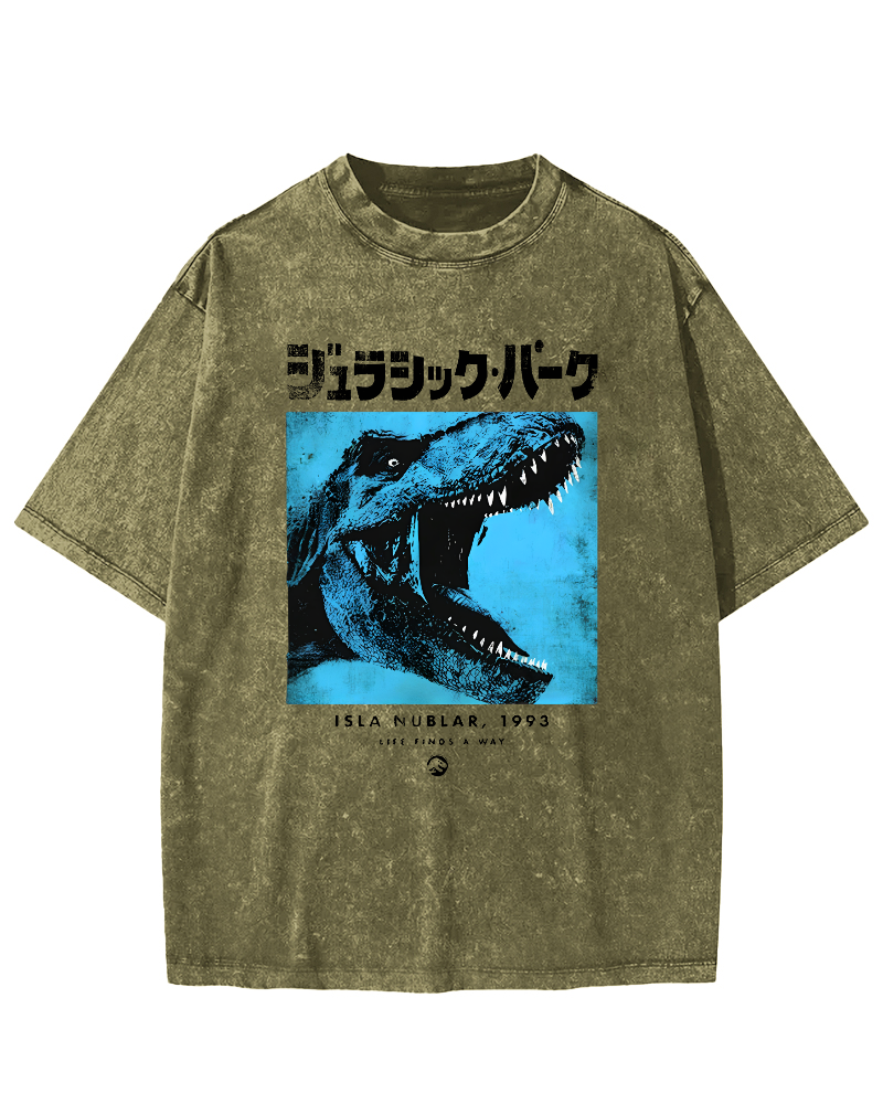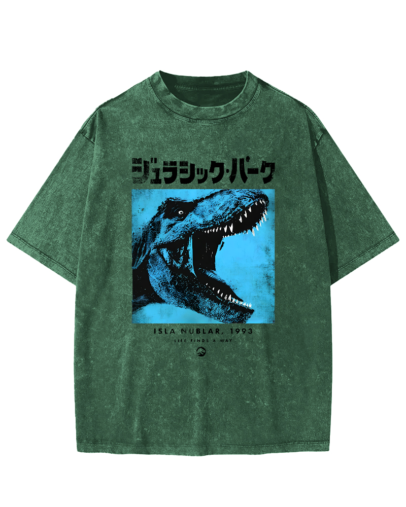 Dinosaur Japanese Retro Vintage Washed T-shirt