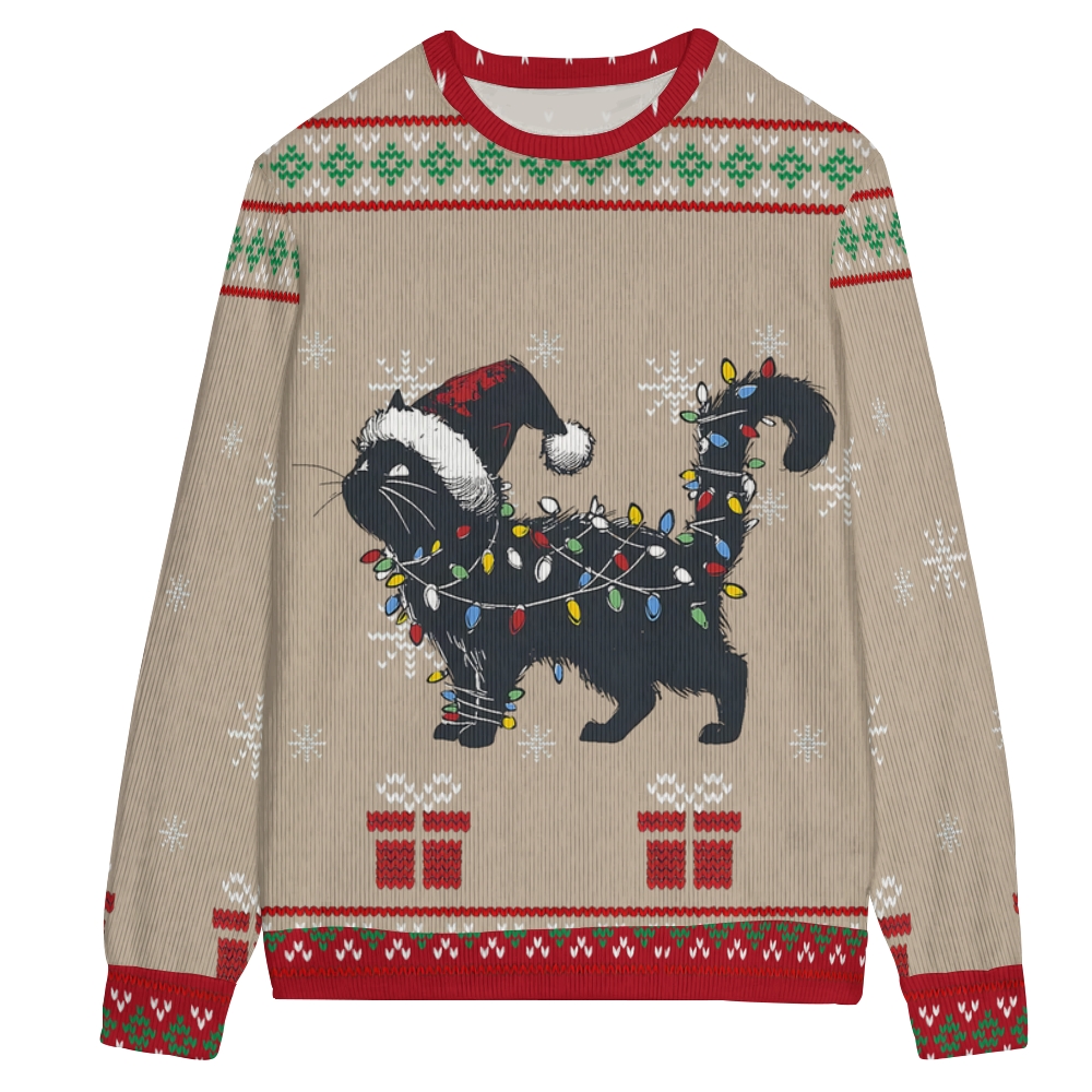 Embroidered Black Cat Light Christmas Ugly Sweatshirt
