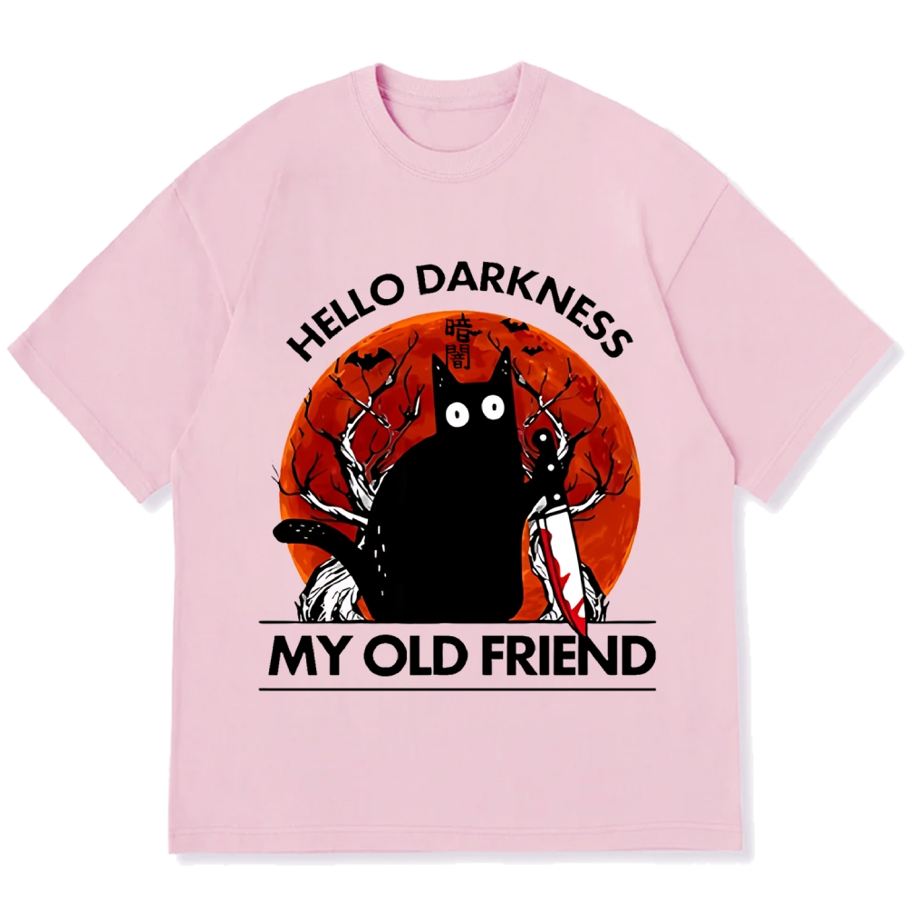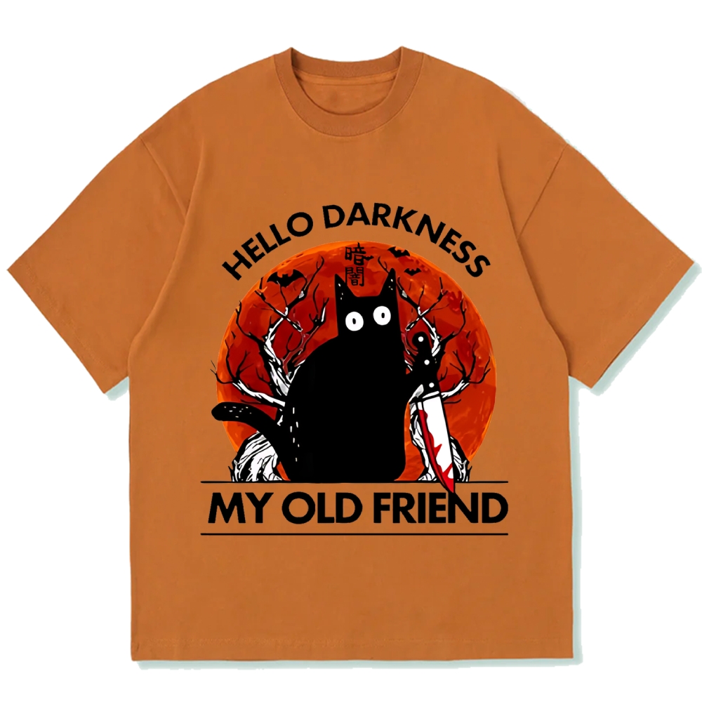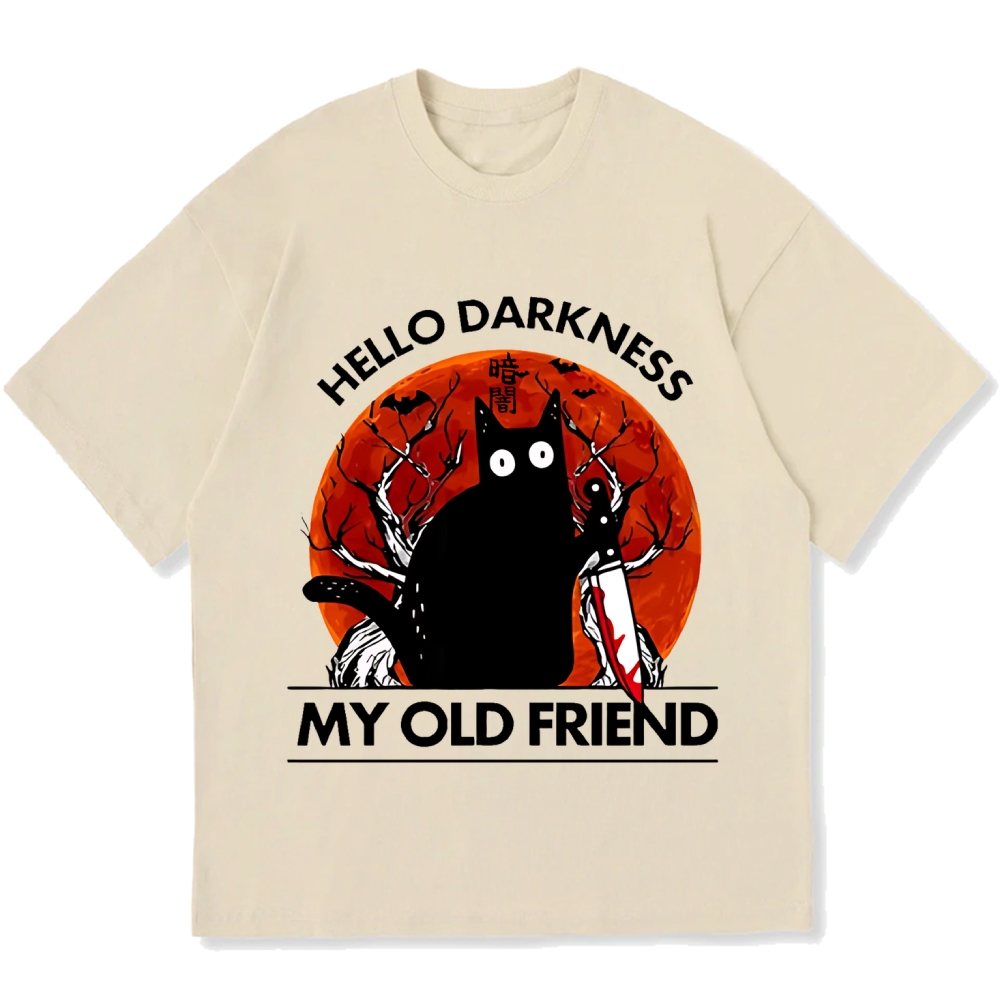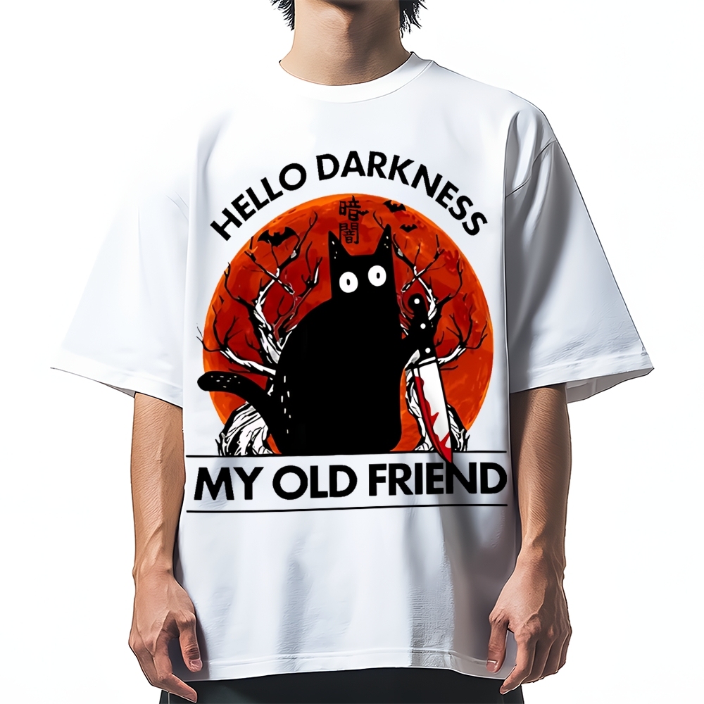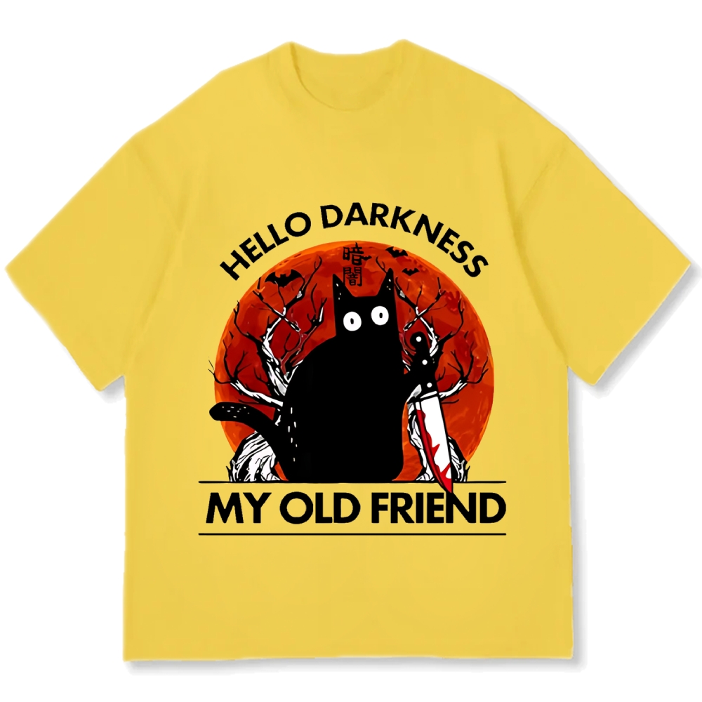Hello Darkness My Old Friend Killer Cat Cotton casual T-shirt