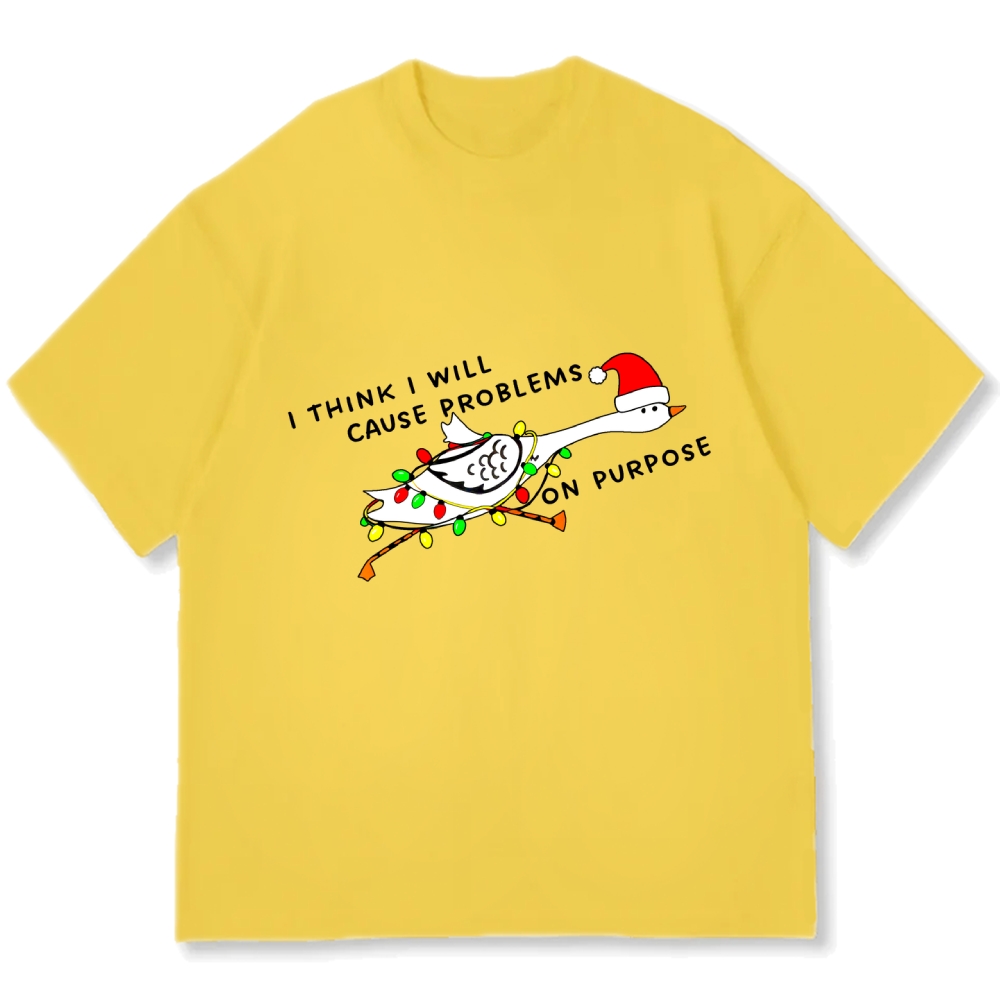 I Think I Will Cause Problems On Purpose. (Christmas Goose) Cotton casual T-shirt