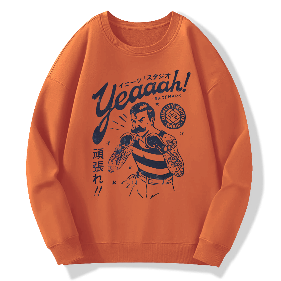 Japanese boxing retro Cotton Pullover Sweatshirt